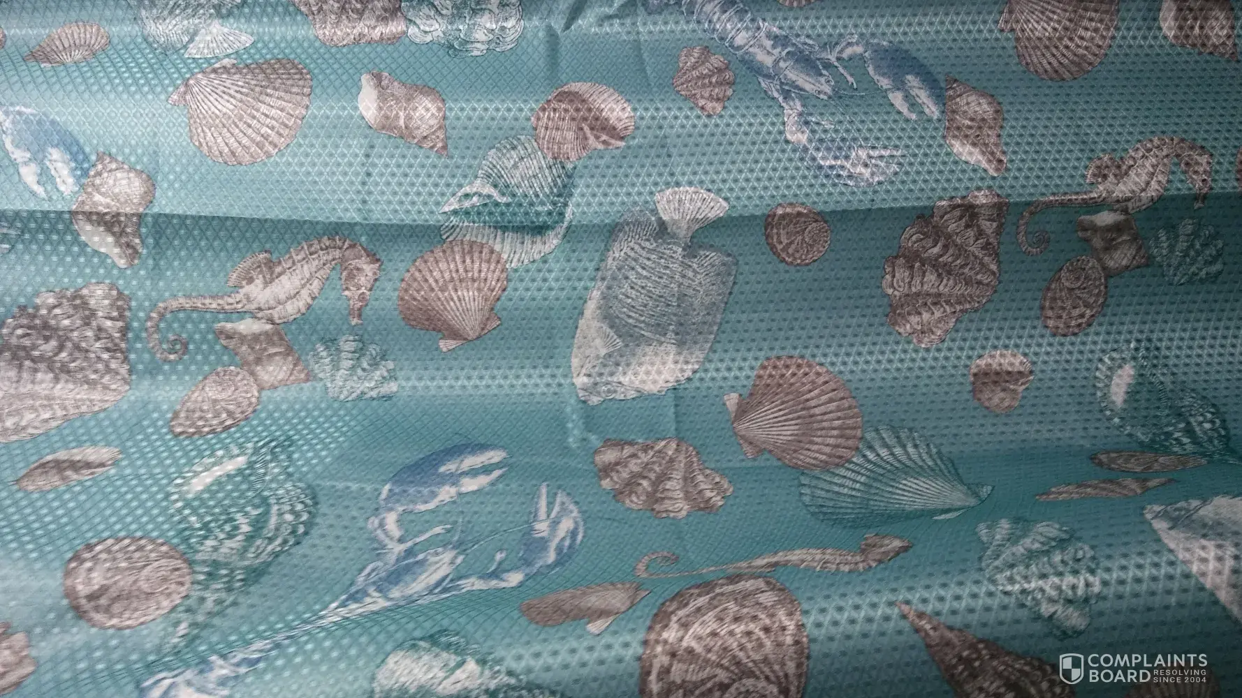 My shower curtain was not inspected and I suffer from really bad OCD and it was made upside down. It is the one with seashells..lobsters and fish. Fish only look like that when they are dead. I am in Sturgeon Bay WI at my new camper and if I could have brought it back to Wal-Mart I would have I picked it up at the DePere WI store...but bought 2 months ago or so and open it up hang it and the next time I went into my bathroom I was shocked. I sure hope someone is inspecting better after this complaint. The rugs that came with it are awesome. Thank you to the person that has to deal with reading complaints. Dorothy Leurquin.