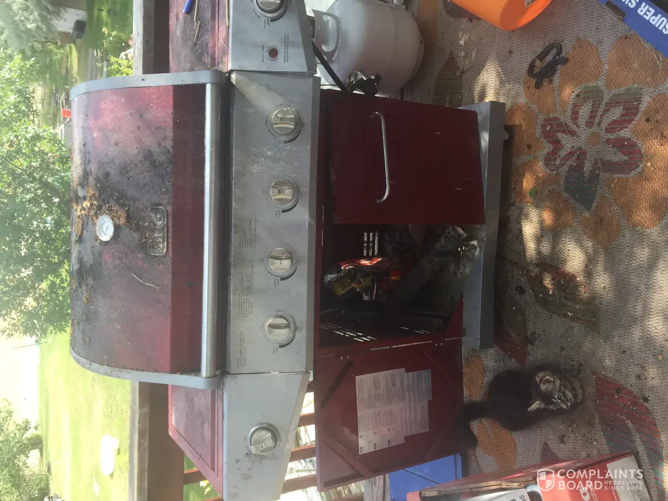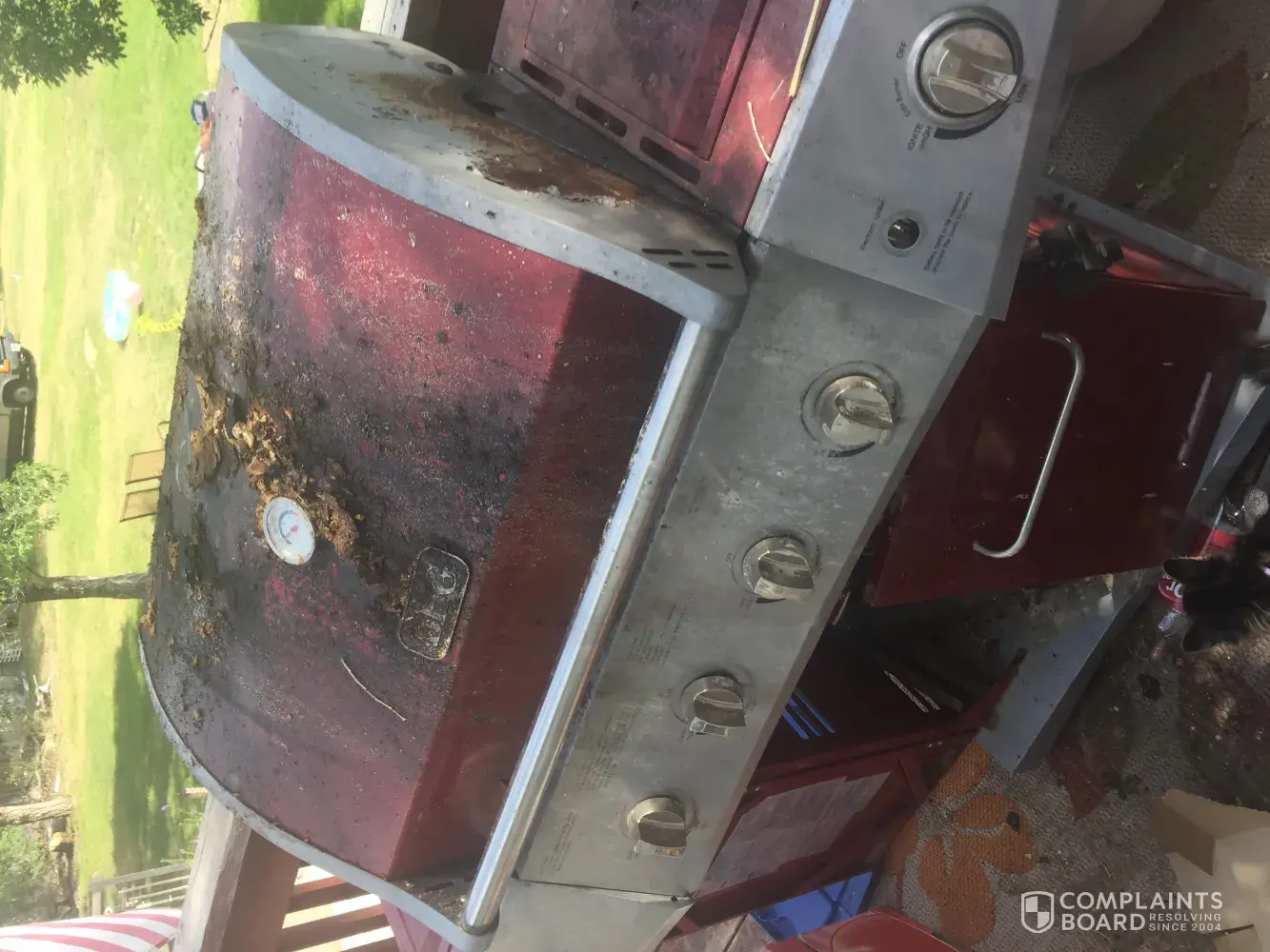 This grill was purchased in December 2016 and always seemed to have issues but last weekend it became engulfed in flames coming up from the back of the grill this was just warming up no food was even on this grill why it caught fire is crazy, my rail on my patio caught in fire we had to call the fire department. Fortunately my propane did not catch on fire and blow my home up we were extremely lucky.