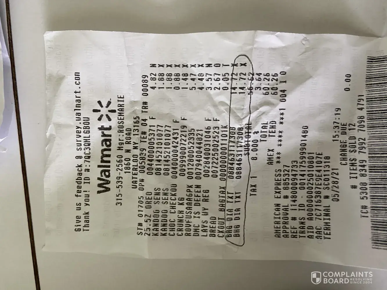 On 5/28/2021 I bought two Better Homes & Garden bathroom mats at Walmart in Waterloo, NY. I respect your company and felt they would be quality products.