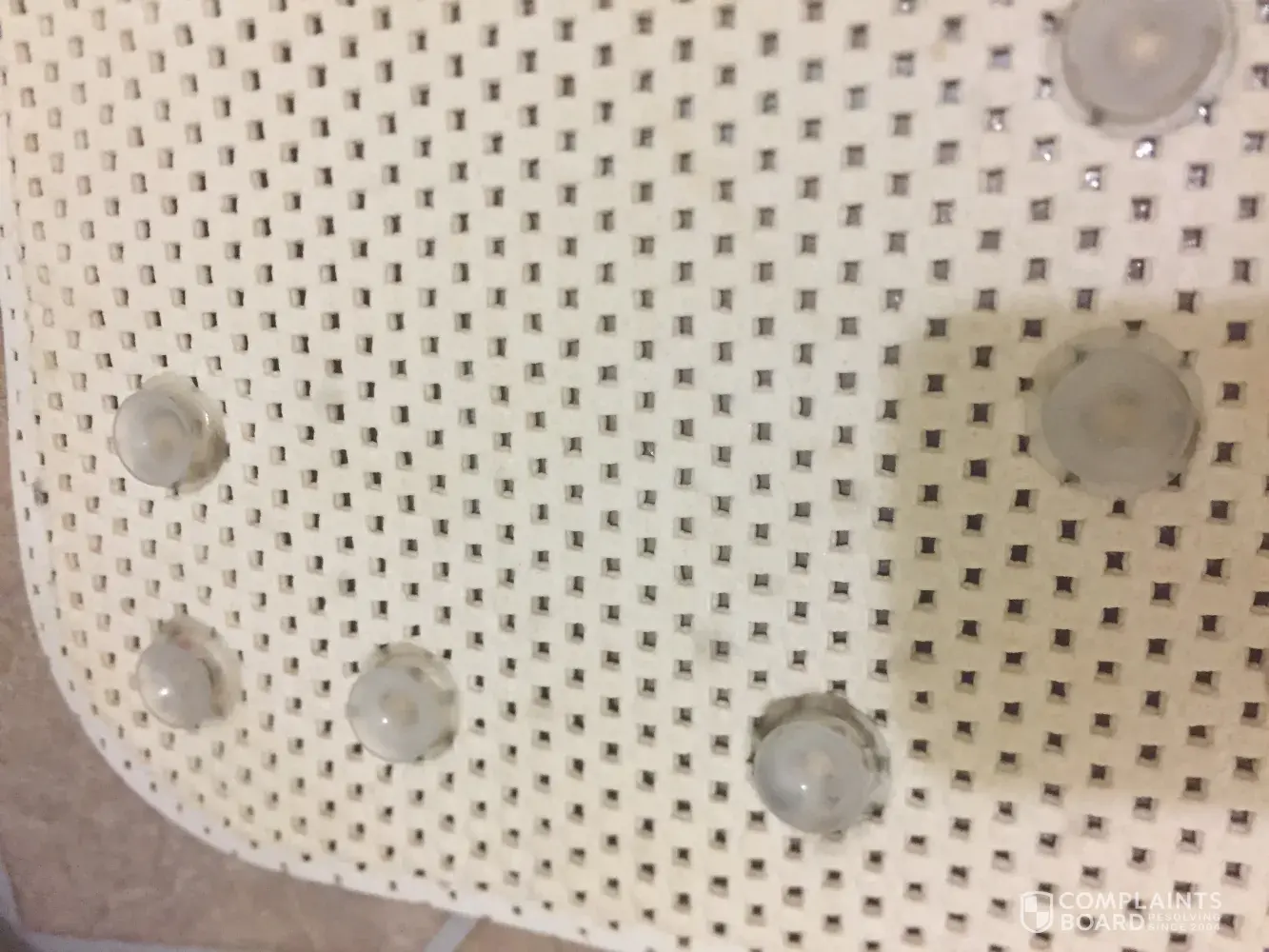 I purchased a bath mat about 2 months ago from Walmart. First it has never suction to my tub I've tried multiple times . My 4 year old daughter had fell because of the mat coming up. Now the mat has black mold all threw it on the front and back side ! Has got to be the worst bath mat ever made