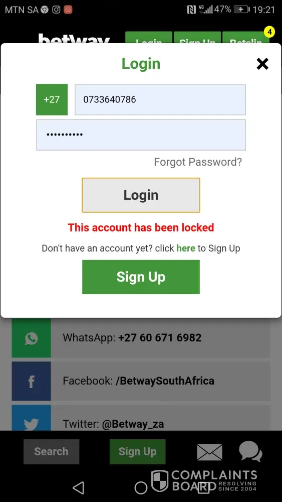Betway Group fraud, account is blocked