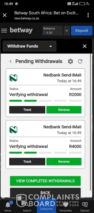 Betway Group Cash Send payout not happening since August