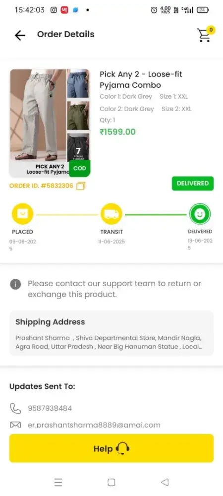 I have order jogger’s of XXL size and I have received shorts of L size and I just wants to return it so I am trying to contact them from yesterday but still there is no reply from there side