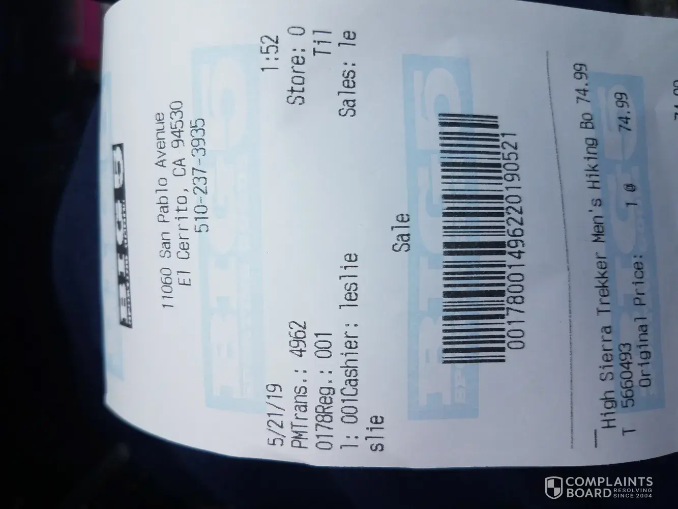 I am extremely offended by the attitude and behavior of this company. The company's position is that I am not entitled to any refund or store credit for the boots I have purchased, wore only once, and now must throw away when they are in brand new condition. This position is in violation of every one of numerous consumer protection laws governing every single transaction within the United States. These laws are clear: It stated that the company, being in the business of selling sporting goods, should understand that the hiking boots they sell "must be fit for the ordinary purposes for which such boots are used". This law is universally applicable to any product sold in the United States. The fitness for the ordinary purposes of the merchandise sold is the fundamental principle of anything sold in the United States. This is what the consumer protection law requires. Selling hiking boots that fail after only three miles of hiking and then badgering the customer and telling him to get lost is not only bad business it is also a clear violation of the law. This is what was behind the "lemon law" which was enacted against unscrupulous car dealers. In my experience, Big 5 Sporting Goods is far worse than any one of these unscrupulous car dealers.