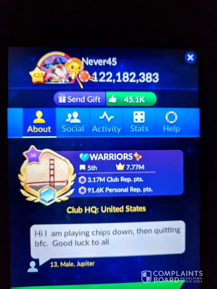 People are spending their saving and retirement on this fake game/ chips. No winnings. I suggest this game to shut down so they stop using people.