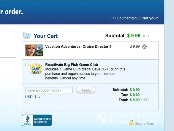 Yet, when I click "Buy Game" it takes me to a checkout page where the game is listed as $9.99. (See last of three attachments image).