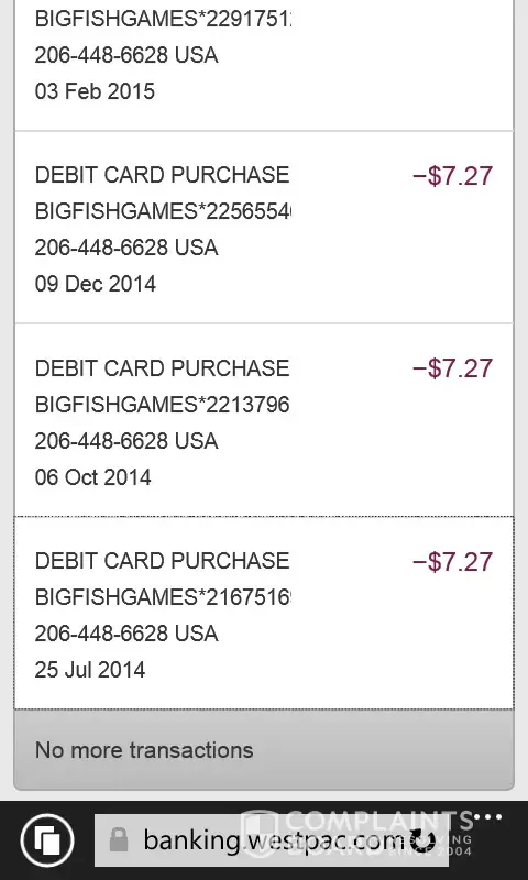 Every transaction is $7.27 AUD and there are payments dating back to 2014.