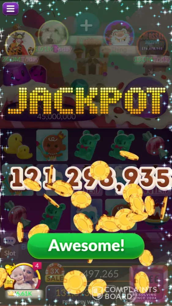 I have two complaints, I emailed and sumbittef a complaint about mad mouse and I did not receive the pot money or the 5 scatter I put in. My second complaint is I won a jackpot yesterday 7/13 and had 243 million. I did spend some and had over 200 million when I went to bed. I woke up with 2.5 million. I feel sick like bigfish took my chips. I bought several times this month and I would like all of my chips back, the jp winnings and my mad mouse. I will attach all the pictures. Please get back with me asap.