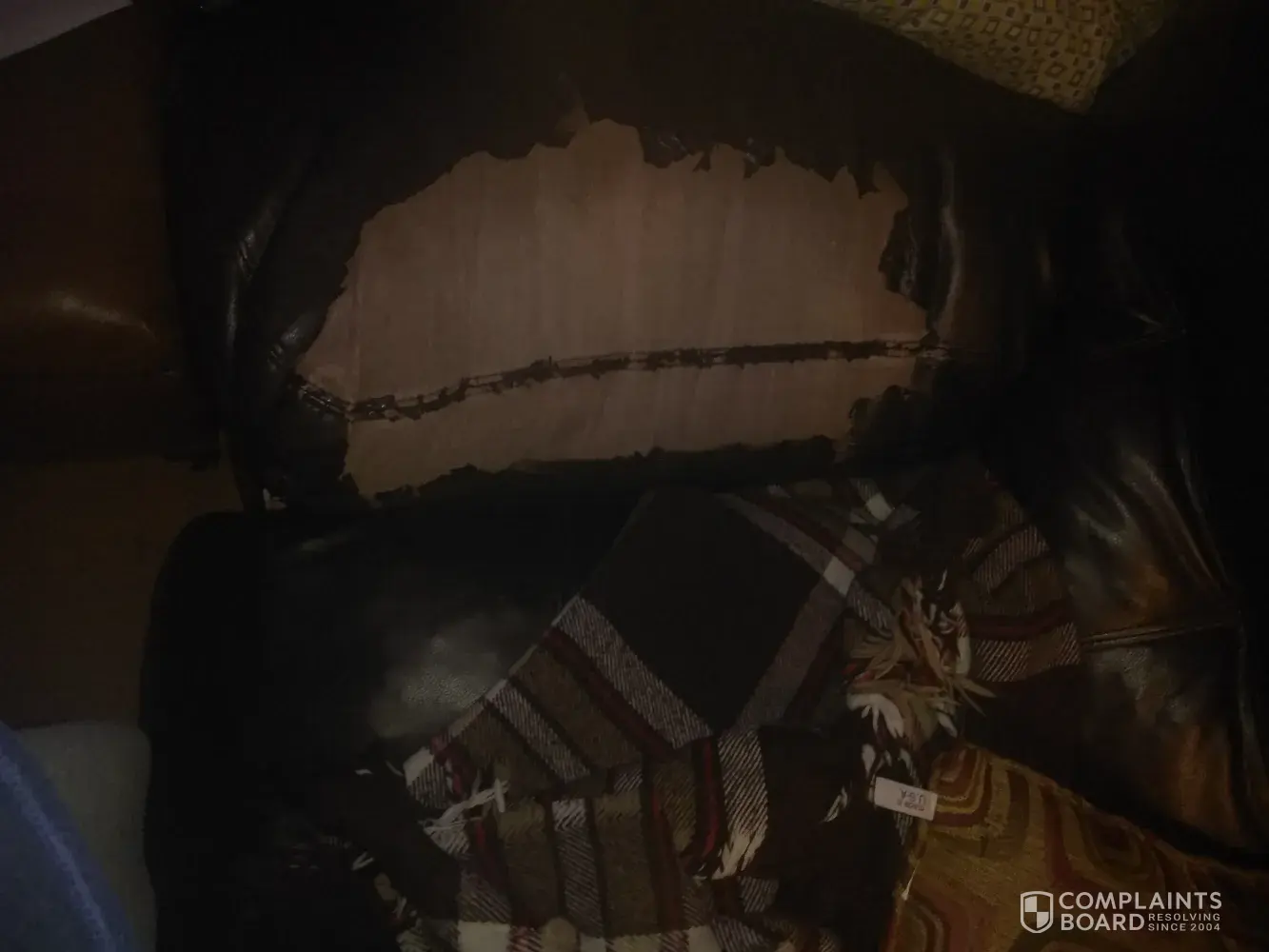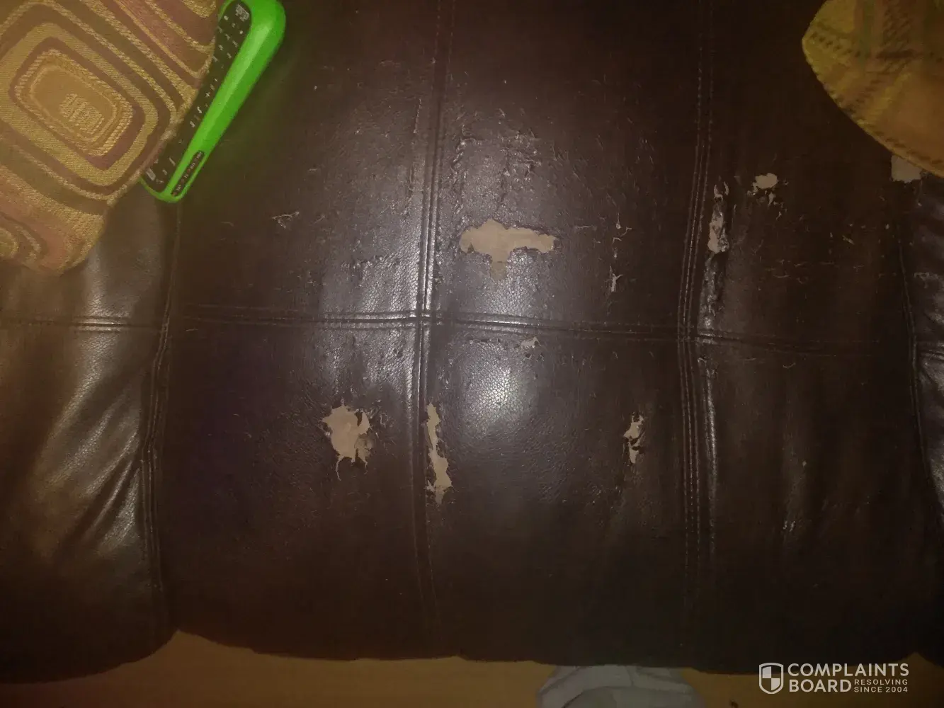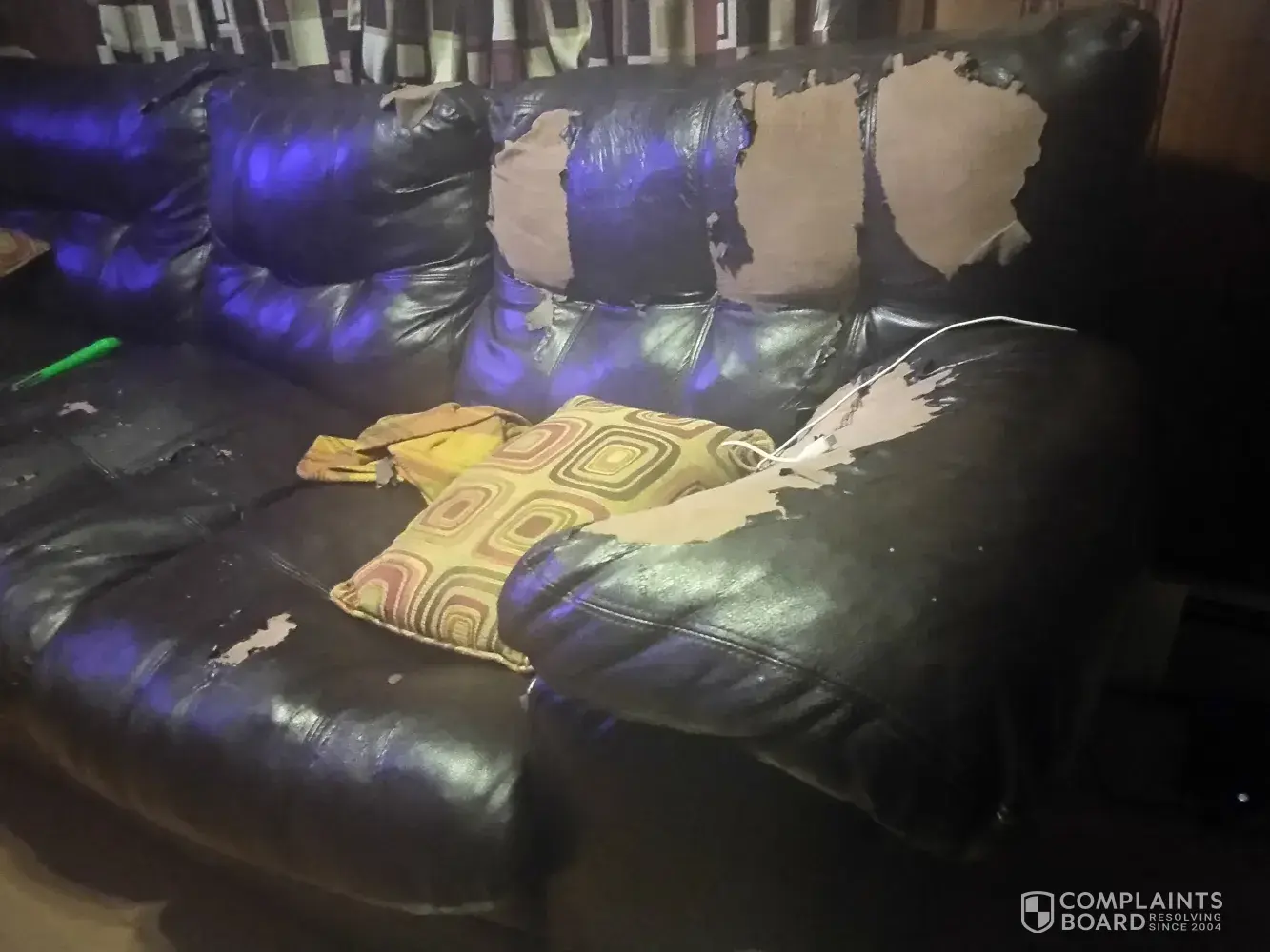 Sofa may be just about 3 years and it started breaking down at least 2.5 years ago. Leather like sofa. First the spring dropped and seat sunk in, as time went by it started peeling the plastic later away from material. This sofa should have lasted longer than 3 years. I wrote in one time to complain and they asked if I had my receipt, in which I didn't. I am so disgusted every time I go in my den which we use lots of time but did not know we were distroying the sofa by using it on a normal bases. included are pictures. I had second thoughts when I purchased it, but tried any way, and now I have a soda that looks like I had it 25 years. No kids no pets and no one smokes, just poor çquality materials.