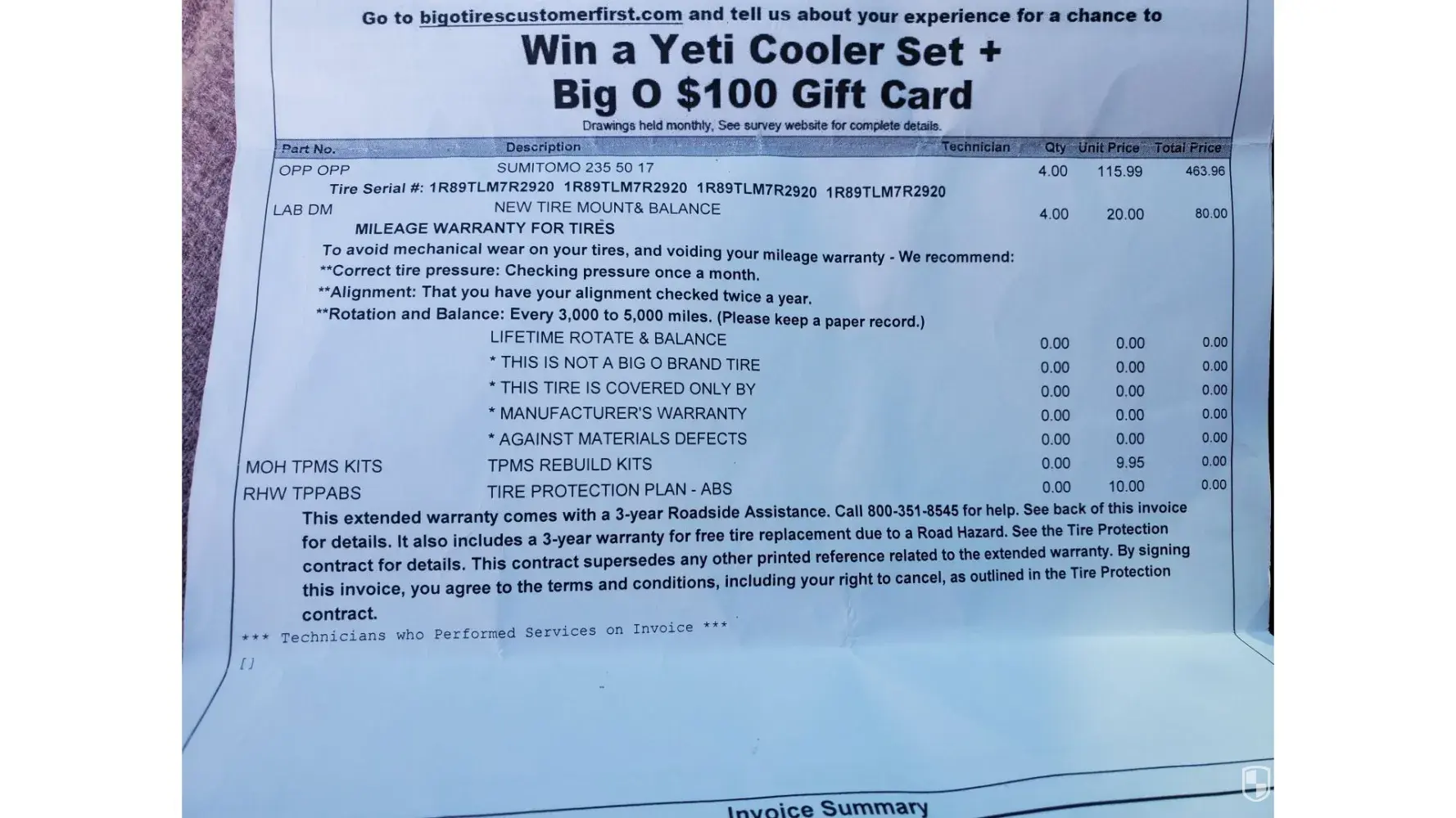 I got 4 new tires from Big O Tires Store #4155 on May 19th with a warranty