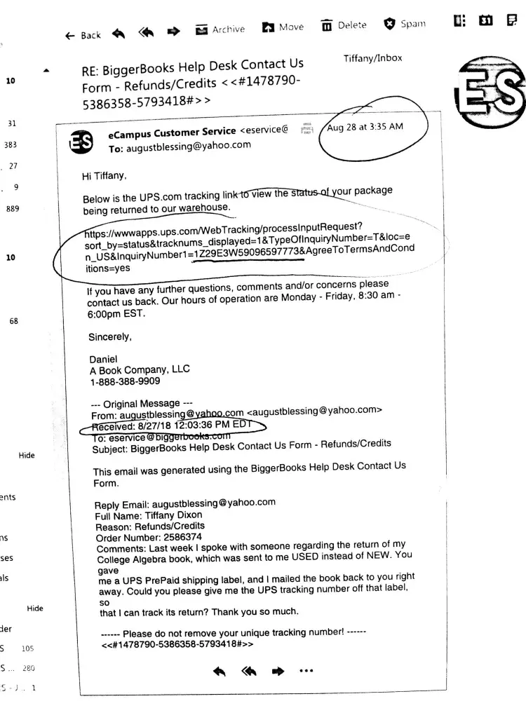 The other 2 new books I ordered from them showed up within a reasonable timeframe and were the correct books, so I’m not sure why they sent me a used book! As a first time customer who already referred several people to their website, I am now concerned that this may happen again with any future orders. That being said, I will be very leery about purchasing new books from them in the future, and if I do refer people to their business, I will give the disclaimer that they may not want to purchase new books. It is not a gamble worth risking. I ordered the book from them the very day my daughter found out what book she needed for class, so this is not my fault for waiting last minute, as I did not.