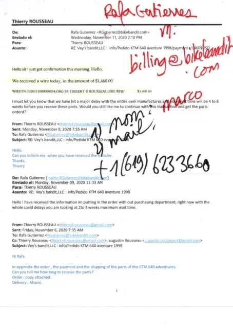 He advised that the parts will be shipped free domicile and that all local customs charges, etc will be to bikebandit.com's account. Although these charges were still expensive, considering that we only pay 5% import duties here, I agreed and confirmed the order.
