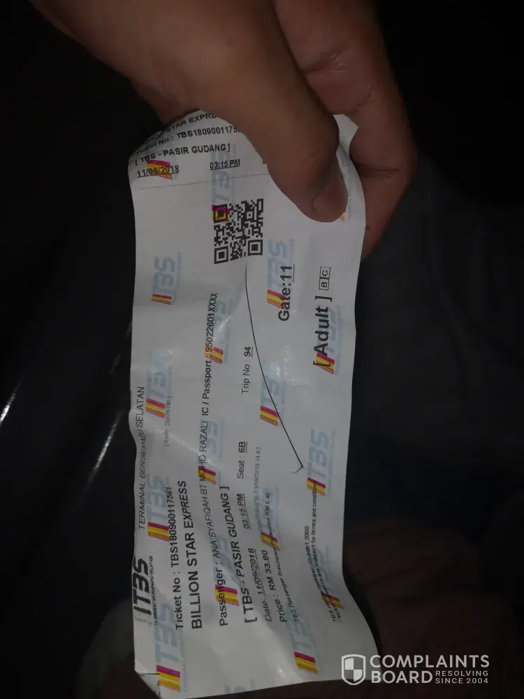 I would like to complaint about Star Billion Express bus bound for Singapore. Im now still riding on the bus, 25th November 2018 5pm bus from Terminal Bersepadu Selatan (TBS) station for Singapore.