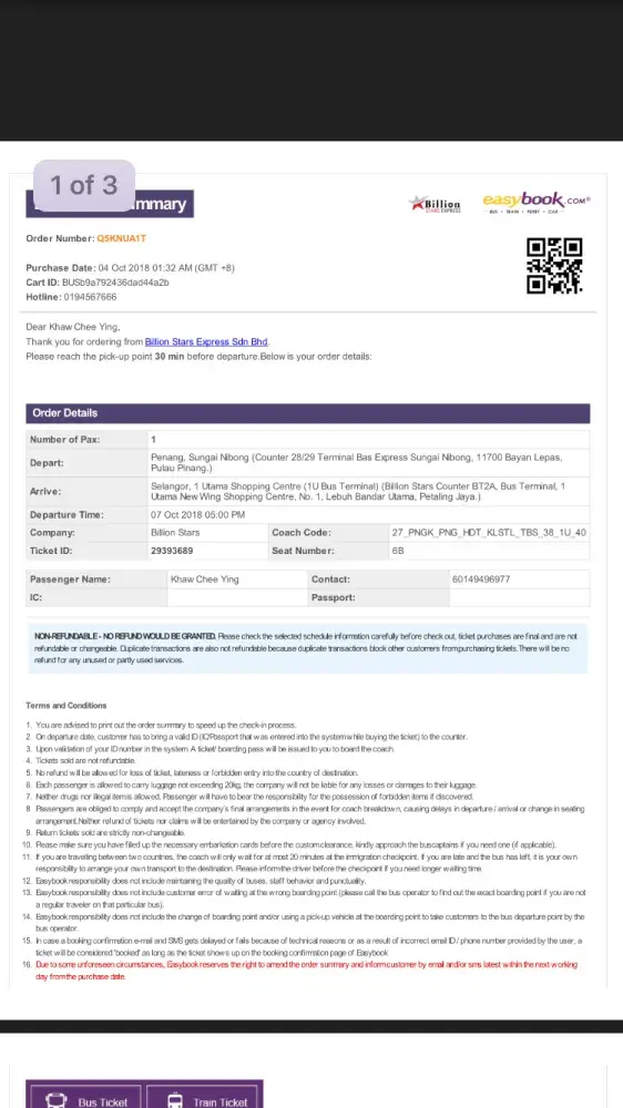 我开始买的时候我在golden mile complex 哪里买票那个untie说10点票有是最åŽï¼Œæˆ‘说ok我给了$120åŽæ¥ï¼Œæˆ‘在9.30pm走过去确认下bus å·ç 结果那个年轻的马æ¥å¥³ç”Ÿå‘Šè¯‰æˆ‘(ä¸å¥½æ„æ€æˆ‘们10ç‚¹çš„è½¦å·²ç»æ»¡äº†ï¼Œæ²¡æœ‰ä½å了,我æ¢ä¸€å¼ 去tbsç„¶åŽè½¬æˆ˜åŽ»ipohç»™ä½ ï¼Œå¯ä»¥å—?)我说(ä¸å¥½æ„æ€æˆ‘没有去过tbs,请问有没有直接去ipohçš„ï¼‰åŽæ¥ï¼Œä»–给我了10.30pm的票,我就在黄金大å¤é‚£è¾¹æ¥¼æ¢¯ç‰ã€‚。。