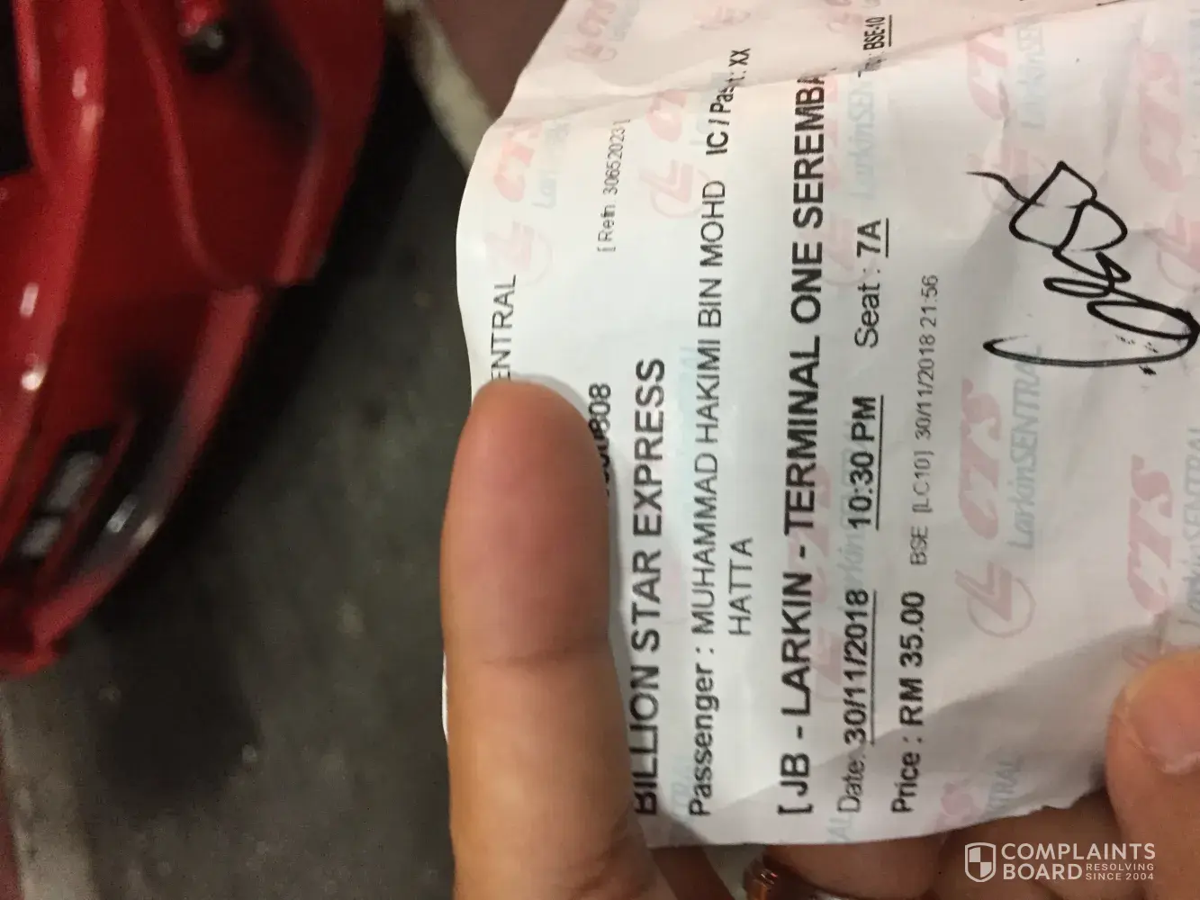 I am writing today to complain of the poor service I received from your company on October 19, 2018. I was take a ride of Billion Star Express from Penang to Kuala Lumpur Sentral (KL Sentral).
