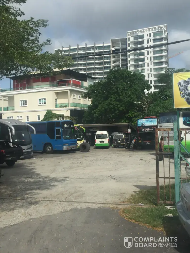 Once I was finally picked up, the bus proceeded to go to 'CJ Car Repair and a Service' in Sungai Nibong just away from the bus terminal. Here we parked and the two men working on the bus proceeded to get off then clean the bus and I was left on board the bus alone. When I asked what we were doing here, where we were or when we were leaving I was repeatedly told '5 minutes' with no other explanation. Once the men had finished cleaning the bus they continued to stand around talking and smoking with other nearby men working on other buses and did not seem concerned about the bus departing. The bus proceed to remain here for around 30 minutes.
