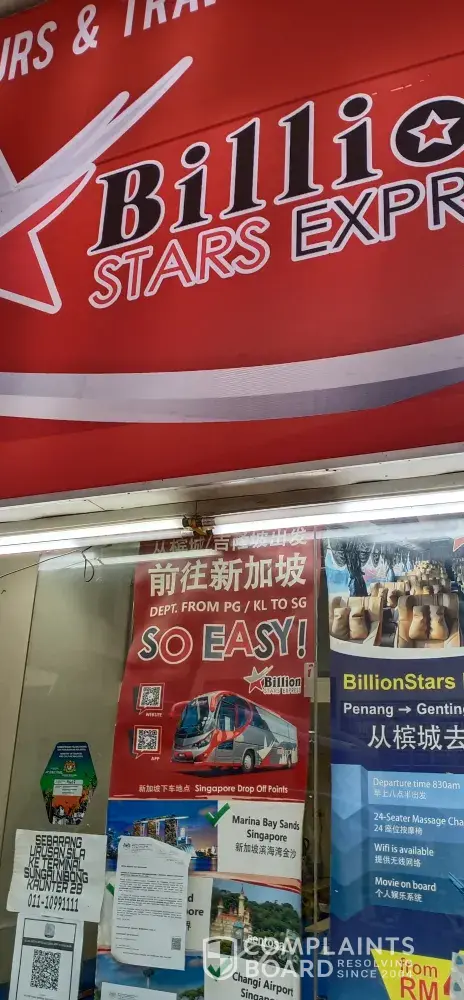 I had no choice and agreed to travel in that double-decker bus but my biggest fear was whether they'll ask the passengers to change buses while on the way to Shah Alam so I AGAIN REPEATEDLY MANY TIMES asked her and also spoke through phone and confirmed with the Manager at [protected] whether needed to change from this bus to another bus on the way and BOTH THE CLERK AND THE MANAGER AGAIN TOLD ME NO there will not be a need to change another bus but OMG that was also a big lie. The MANAGER who I talked to at [protected] was also damn rude to me and just disconnected the call. After drop off and pick up at Ipoh, the bus driver informed the passengers that the next stop is at KL and DBS only. Told the driver that our destination is Shah Alam, the driver replied VERY RUDELY that if you want to sampai safely at Shah Alam just change bus like what I said. What the hell is this, tickets are not free, paid RM180 for 4 tickets and also for the worst service ever had. VERY VERY BAD SERVICE BY BILLION STAR. RUDE TICKETING CLERK, RUDE MANAGER, RUDE BUS DRIVER, etc. No wonder there are many bad reviews for BILLION STAR SERVICES on the website. If I would have read the reviews earlier, for sure I wouldn't have purchased the tickets from them. LMAO what a WORST SERVICES rendered by BILLION STAR. SCAM!