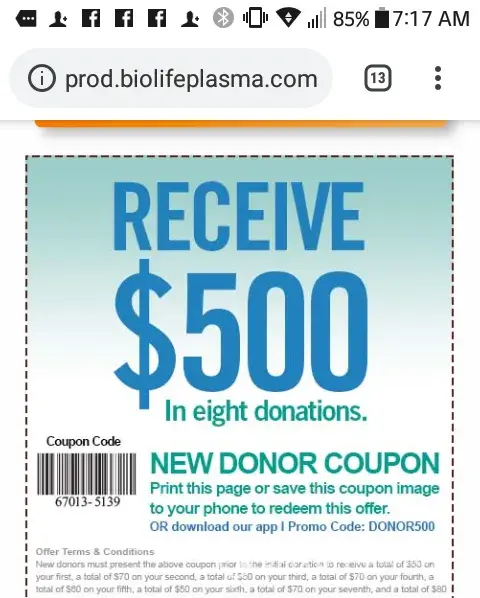 I have the new donor coupon. They gave me my first 6 payments with no problem. Then on my last two payments they gave me nothing and when I asked they referred me just because they didnt want to pay me out. I was yelled at. When I was told to come up there in showed my coupon. Just from them to look at it in say we dont know why u couldnt get the payment but its nonthing that could do. I walked away with my arm hurting, yelled at, talked down too and still got nonthing. I asked for the biolife cooperation number they told me no please give me a call [protected].