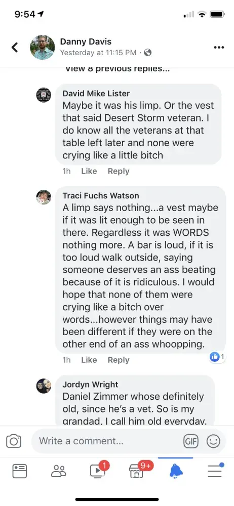 I see that your nurses carry their selves very unprofessional outside of work. I veteran was ill approached at a bar here locally and this nurse is talking crudely towards others in the post that was brought to Facebook. Really surprised me at the words used and her undertones. I will not be back to donate if this is the professionalisms of the nurses on how they talk about our war veterans.