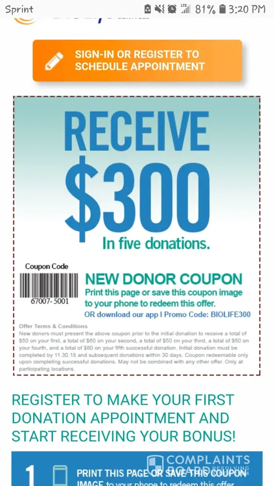 Got coupon emailed to me in october for an additional $75, paid out in $15 increments for my 6th through 10th donation. I turned it in on the 9th of october expecting that the following week would be my 6th donation for the month. Now i'm being told that the coupon was not turned in to go into effect until the 6th donation from that date! That is total bs... You make thousands off that plasma & millions yearly from donations of plasma! The coupon said nothing about turning it in immediately to be paid! Never going back unless this is corrected to my 6th through 10th donation of this month of october! Not day coupon got turned in!
