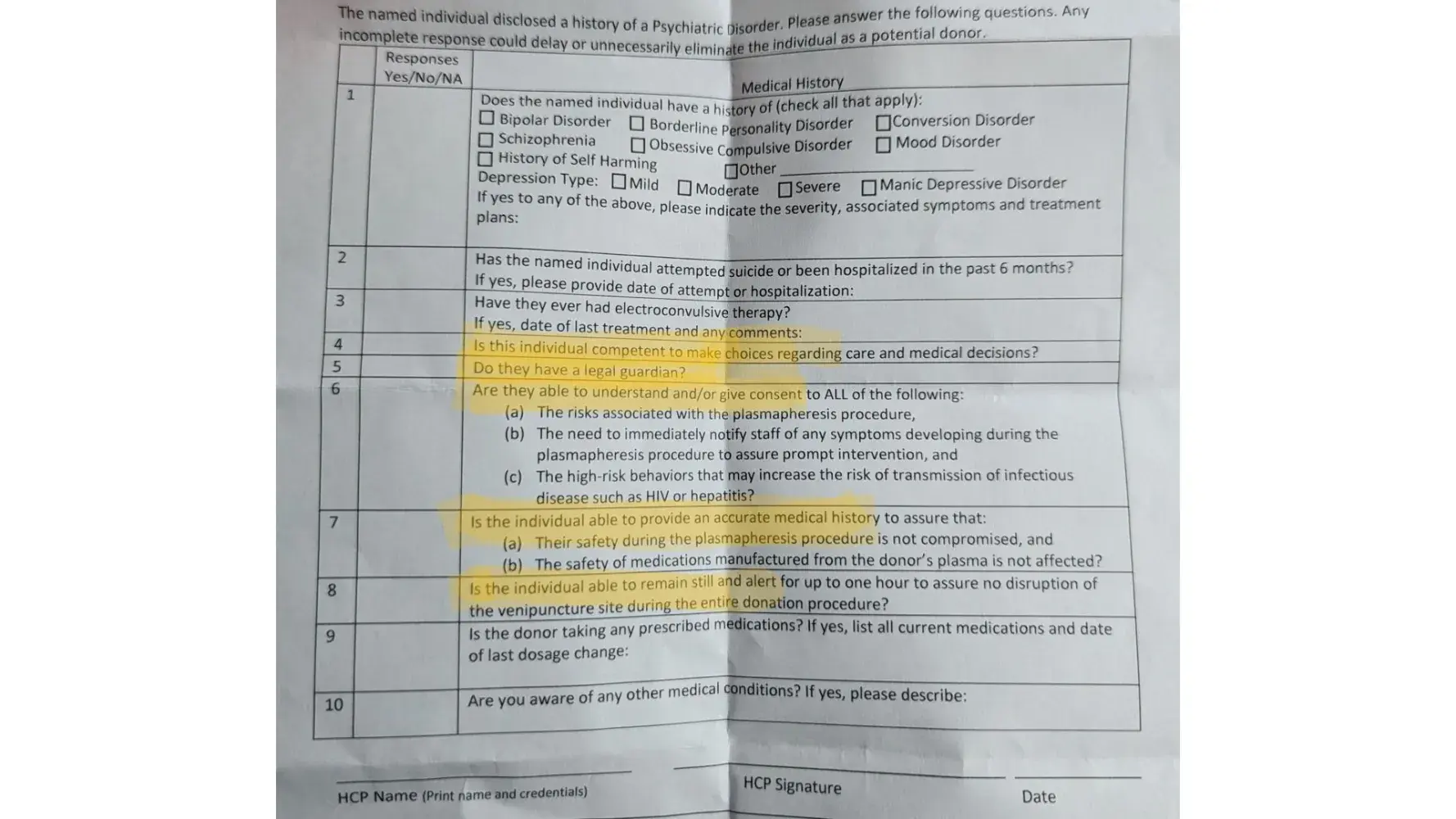I was diagnosed as bipolar in 2019 and since then I have NEVER felt so discriminated against like I was here. Needless to say I will NOT have this form filled out as I will NOT be returning.