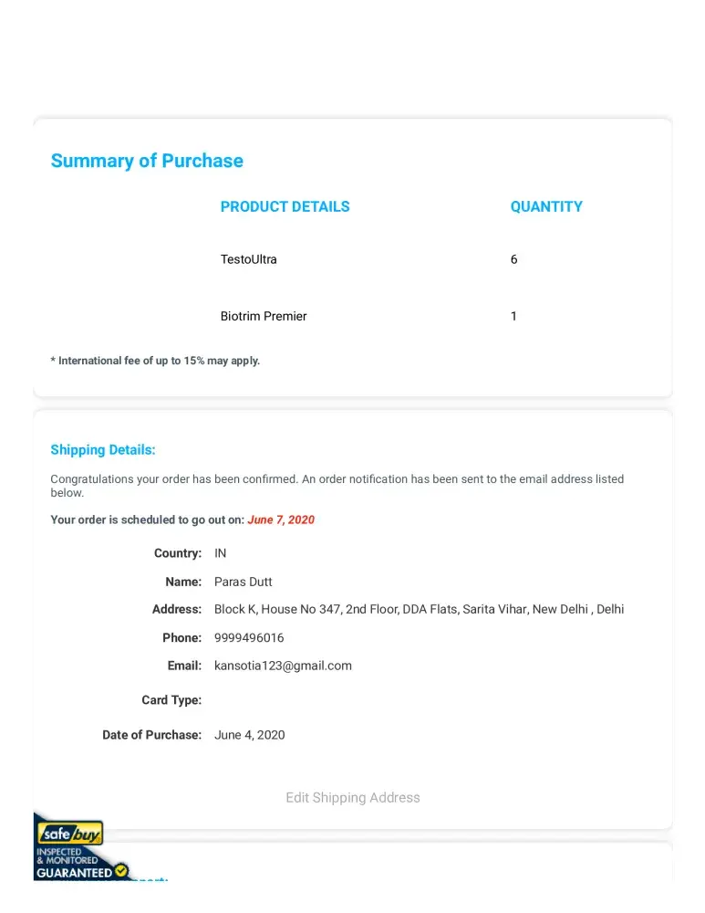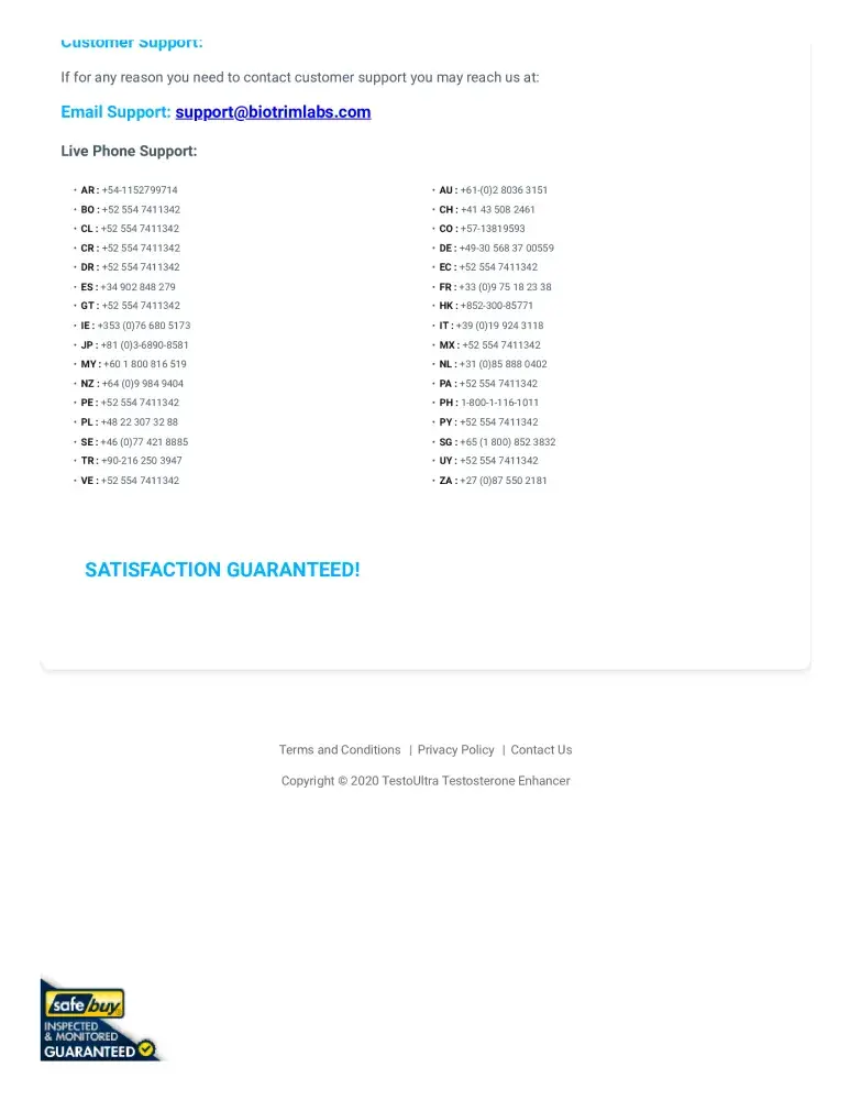 I ordered 2 bottles of TestoUltra January 2018. After a few months I received no product I sent an email to support, delivery and billing@biotrimlabs.com.