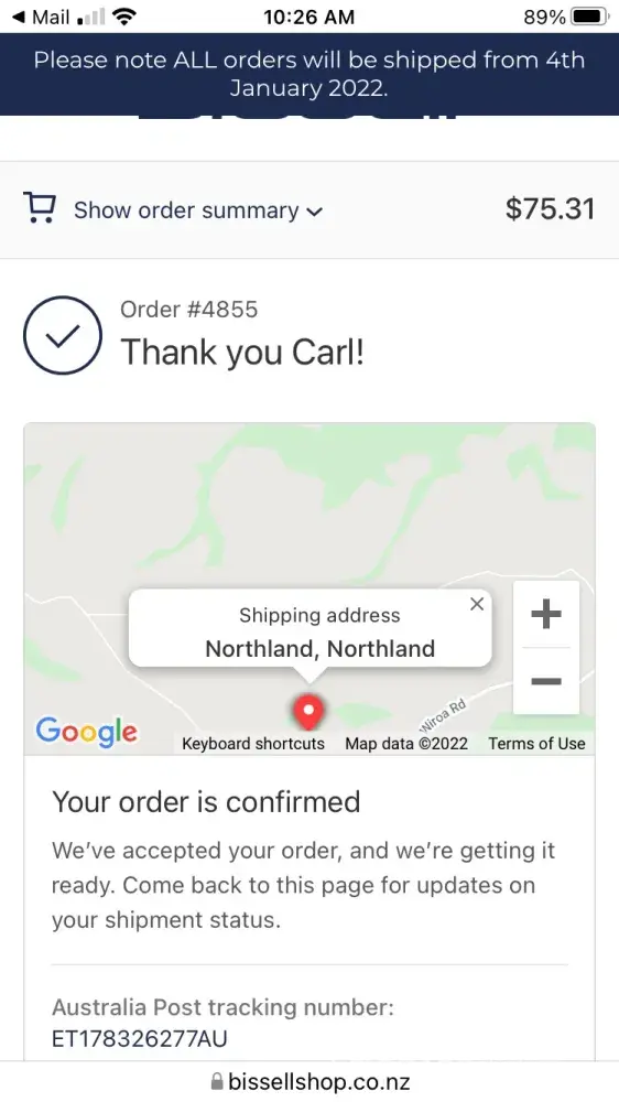 Hi there. We ordered a bissell part for our carpet cleaner on the 20/11/21 and still we have heard nothing not even an email to say where the item is. Item was ordered on bissell website, order number is 4855. I have rang your department on a number of times and get a different story every time. Can someone from your department track this order and find out where this item is. Thanks carl.