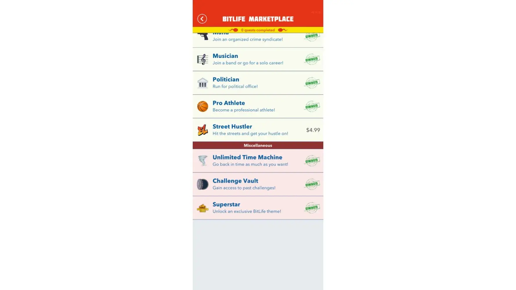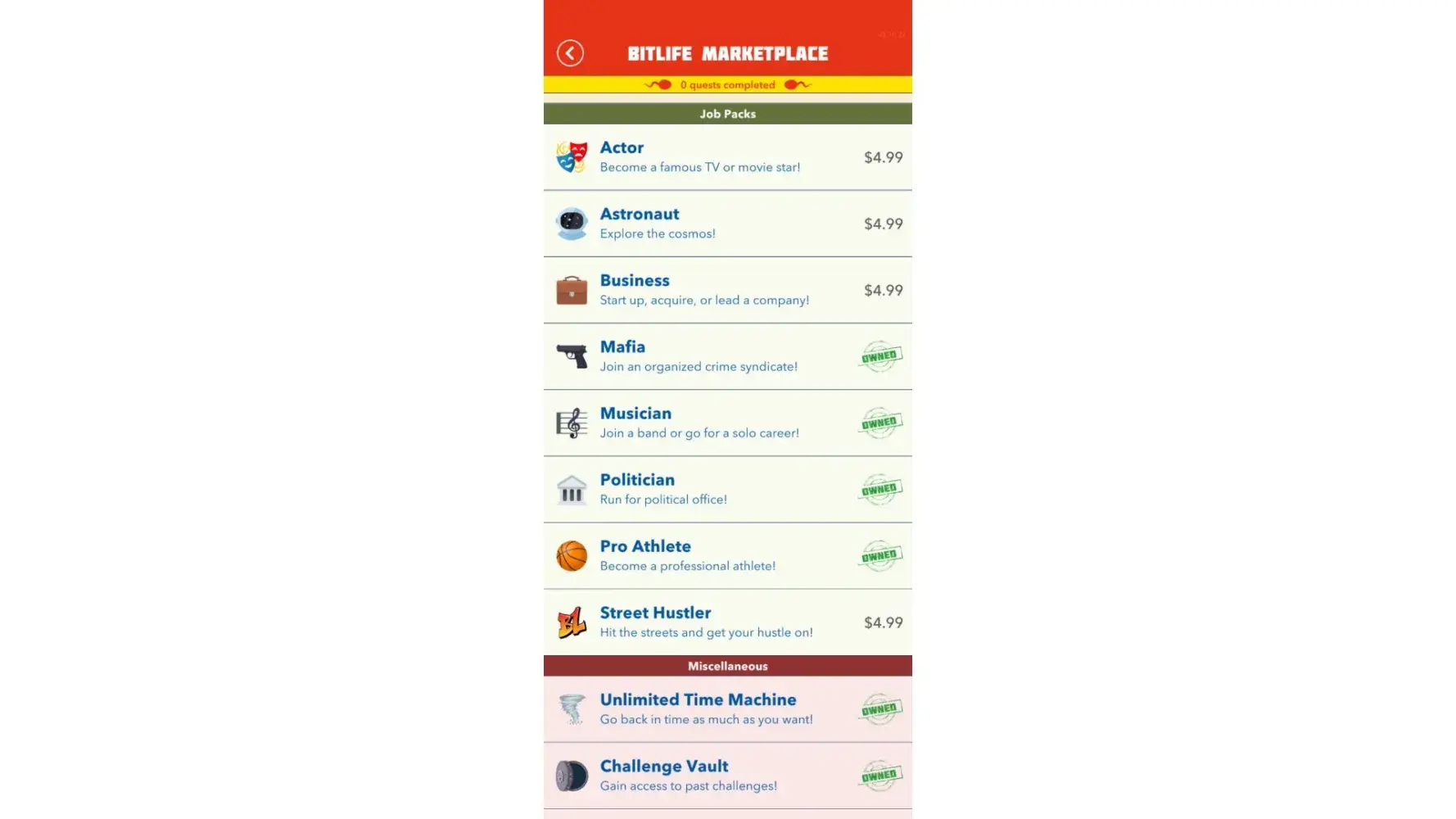 Also, there’s this weird bug where sometimes when I get out of the game for a while and then play again later, the life I’ve been working on is gone. Not dead, but completely wiped off the face of the earth. If you can fix this problem, BitLife would be better for me. Thank you!