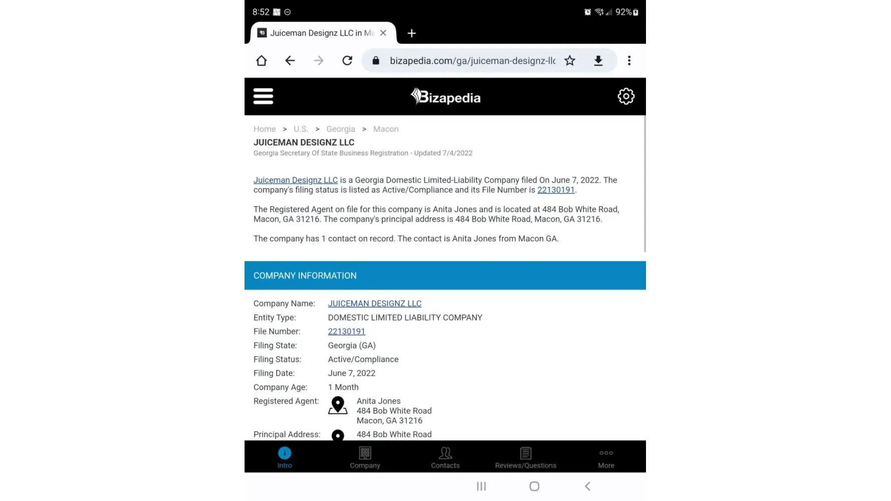 I'm contacting you because I just filed for my business name not too long ago and it's registered under my personal address because I'm working out of my home. I didn't want my personal address put out for everyone to see plus you put the agents name online and my name isn't even included with my business name that you posted. Please take my personal information offline asap. Please contact me at [protected]