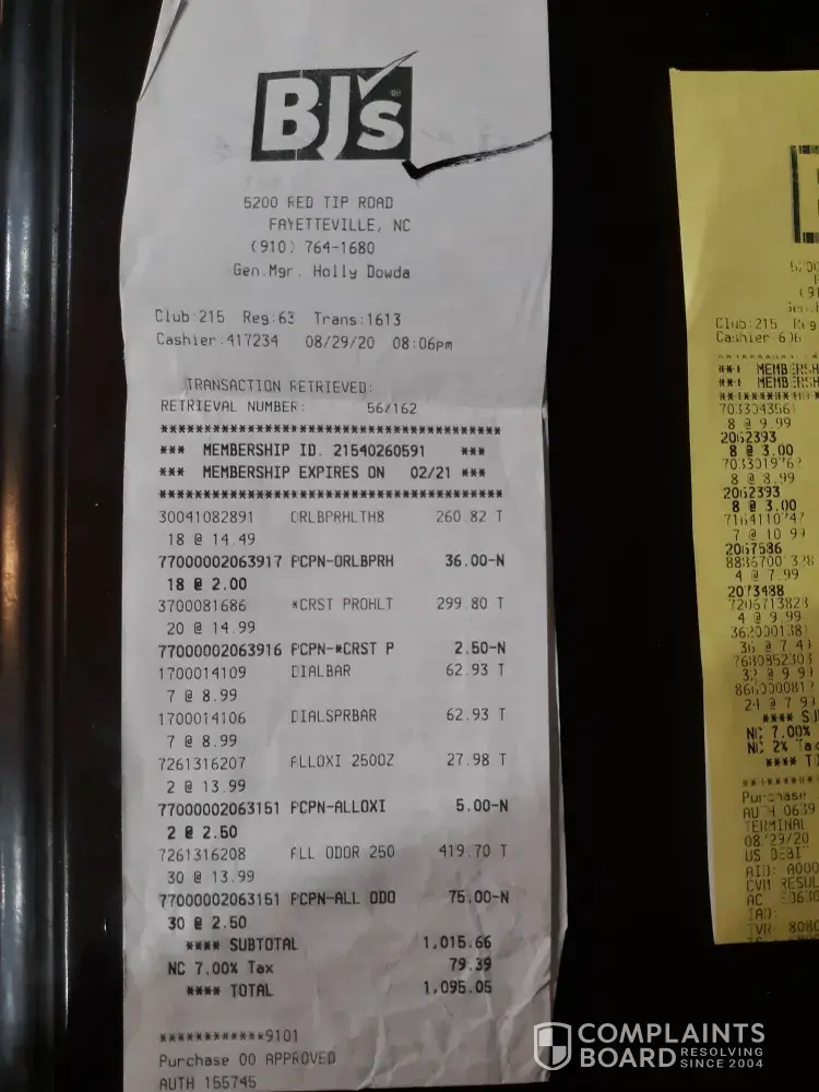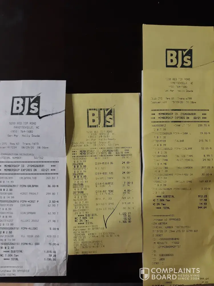 BJ's Wholesale Club An item I bought and paid for and never rec'd