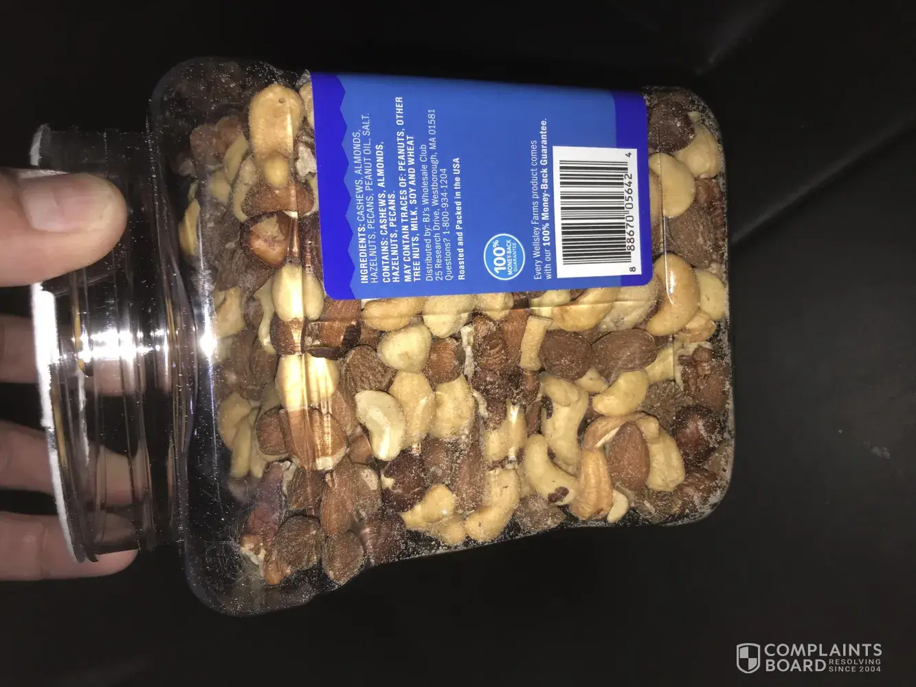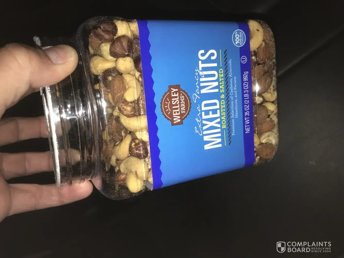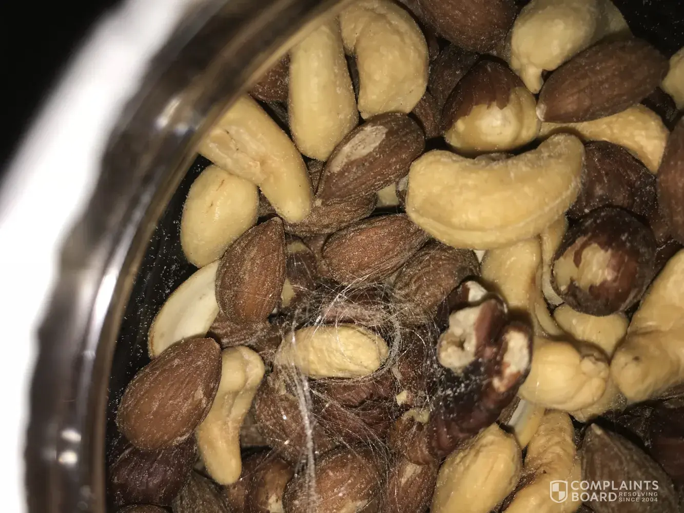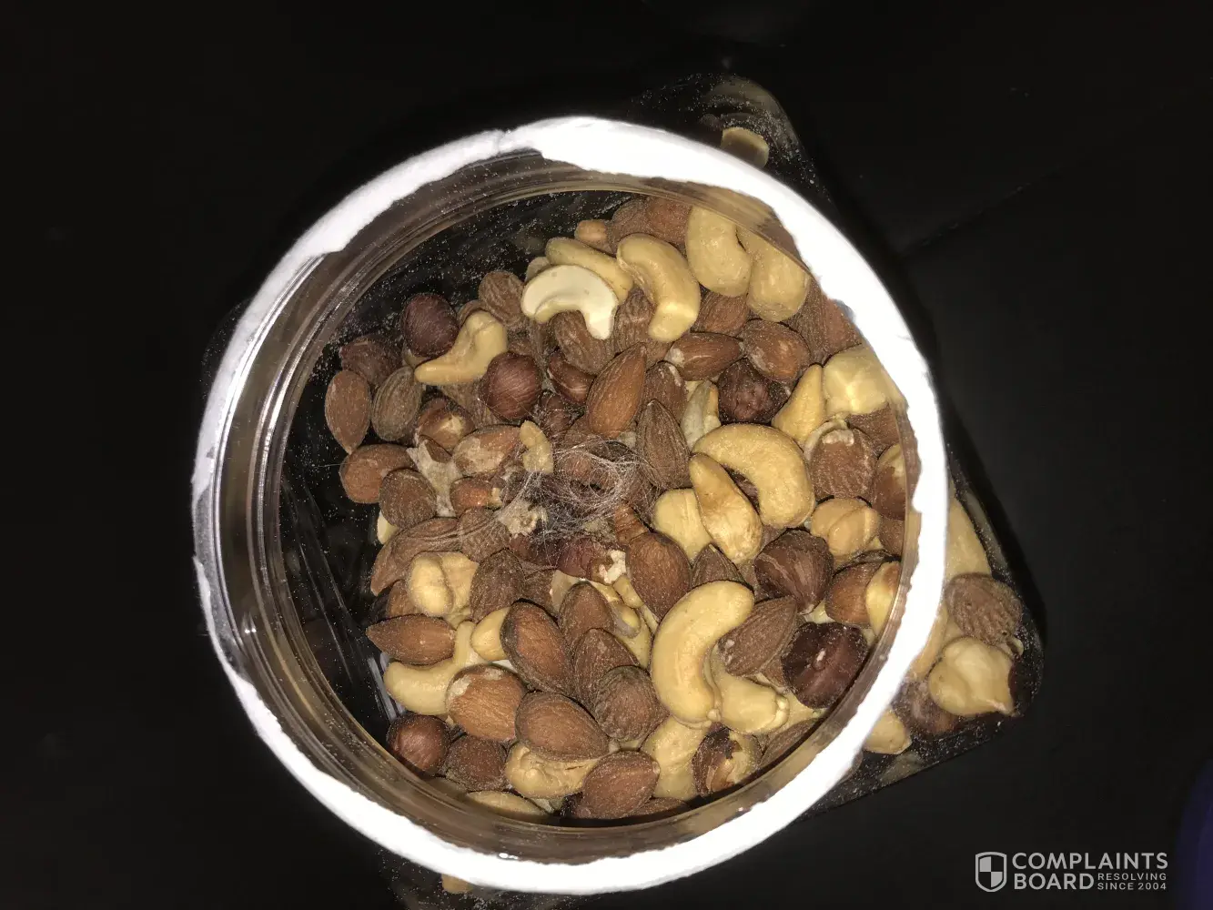 Bought well set farm mixed nut jar opened and was eating found big ball of distrusting hair in it.