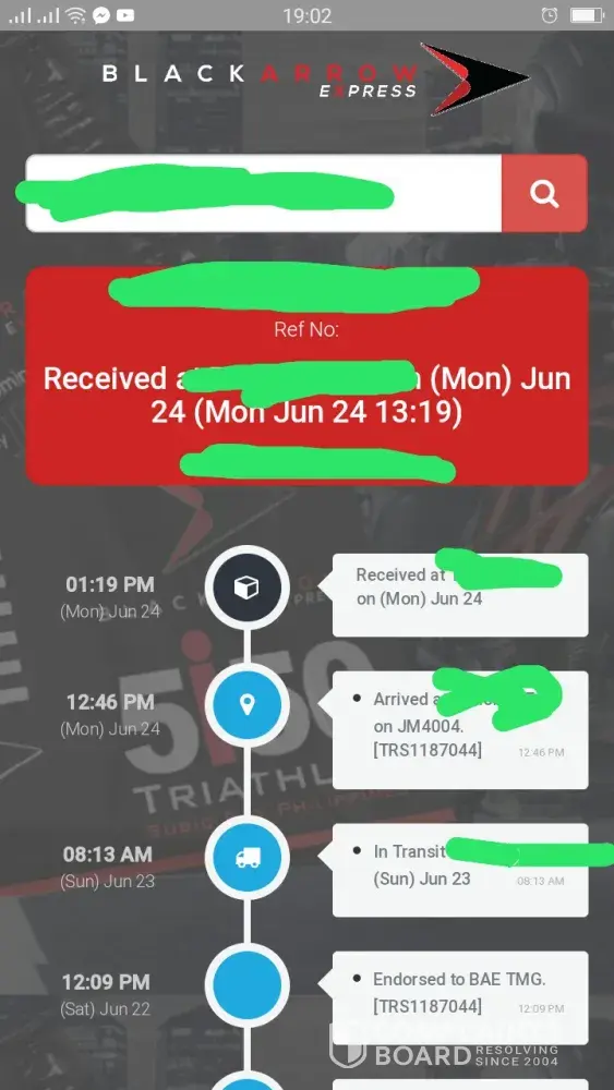 We didn't receive any message or notification from black arrow. We've been tracking our order and it took time for them to deliver our package. When we tracked our order again we were tagged as Consignee Not Available. This is not acceptable. Black Arrow Express should do their job better. I hope they'll fix their delivery system.