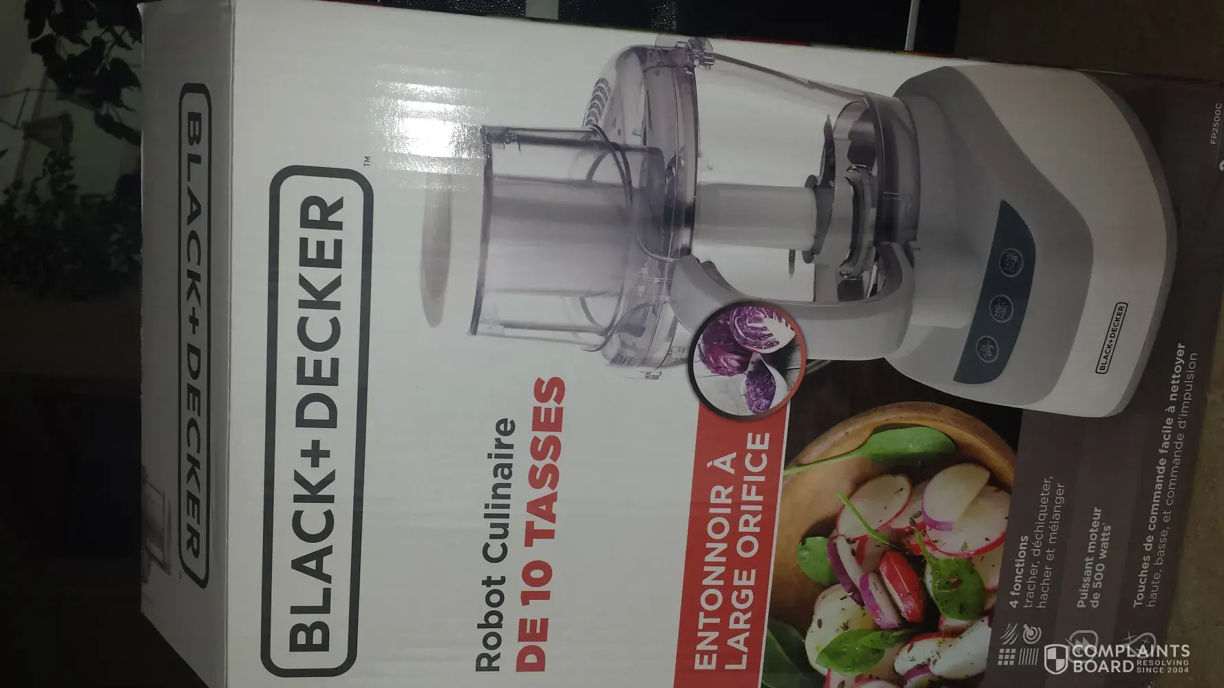 J'ai ouvert la boîte du robot culinaire, et en sortant l'appareil quelque chose m'a tombé sur le dessus du pied droit. La lame du robot n'était pas emballé adéquatement, elle m'a sectionné le dessus du pied droit, d'environ 4 pouces de long et coupure très profonde.
