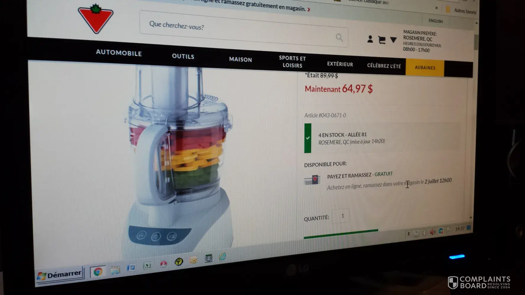 accident dû à l'ouverture de la boîte du robot culinaire acheté le 30 juin 2018 (lame du robot a tombé sur mon pied)
