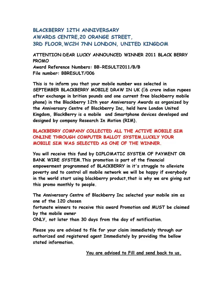 Sir my name is mukesh kumar I am received the below mentioned mails from my mail id, it is really true are fake. The message are sent to really reserve bank of india foreigh remittence department/ any other persons. If really true why rbi foreign remittence deptt. Is not transfer to my wining amount to my bank account till date. Am forwarding all the details including my id card, and all the reports from I am received from. Sir I want to who is sending the below mentioned mails. Please contact me on my mobile no.[protected] and my e-mail id is : m. [protected]@rediffmail.com