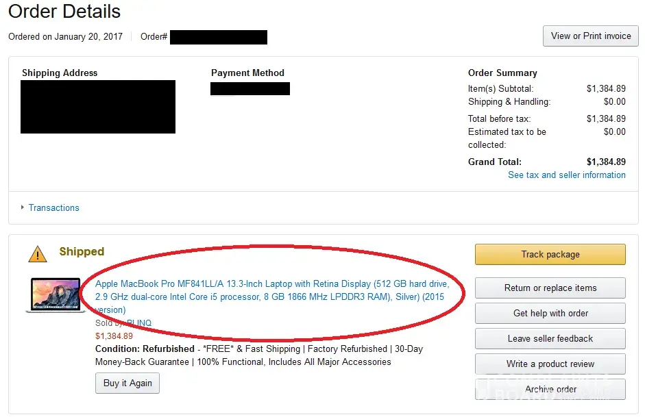 I bought "apple macbook pro mf840ll/a 13.3-inch laptop with retina display (256 gb hard drive, 2.7 ghz dual-core intel core i5 processor, 8 gb 1866 mhz lpddr3 ram), silver (2015 version)" from amazon under blinq merchant. However, i noticed in the track order status from their website shows me an older version "apple macbook pro 13.3" laptop 2.26ghz 4gb 500gb mac os x (Mb990ll/a)". I haven't received the item yet, but from previous complaints, i have no doubt that i'll received the wrong item.