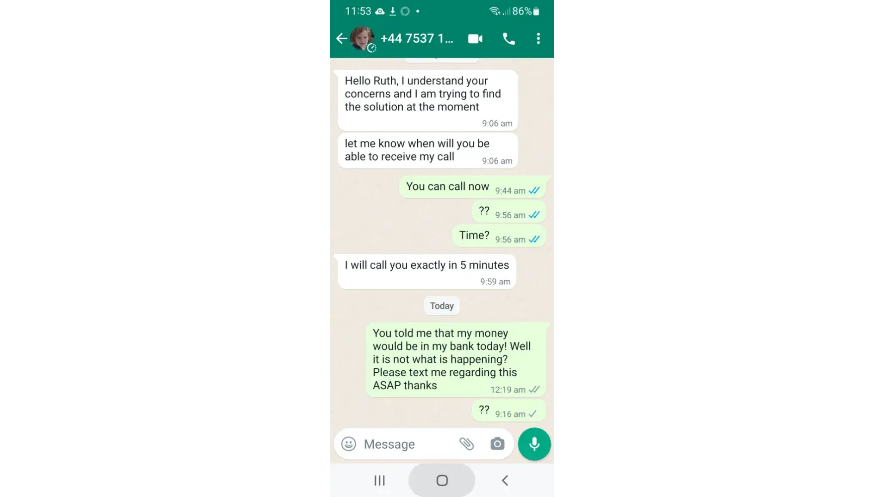 WOW! I never knew I was dealing with such fraudsters. I've been dealing with someone called ALEXANDRA tel. +[protected] I don't know where my money is? Said it would be in my bank by today and it isn't.