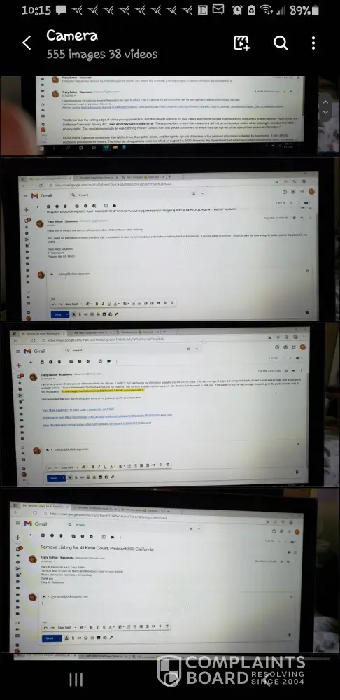 Desired outcome: Remove my name from the listing at minimum. Honor CCPA requests automatically.