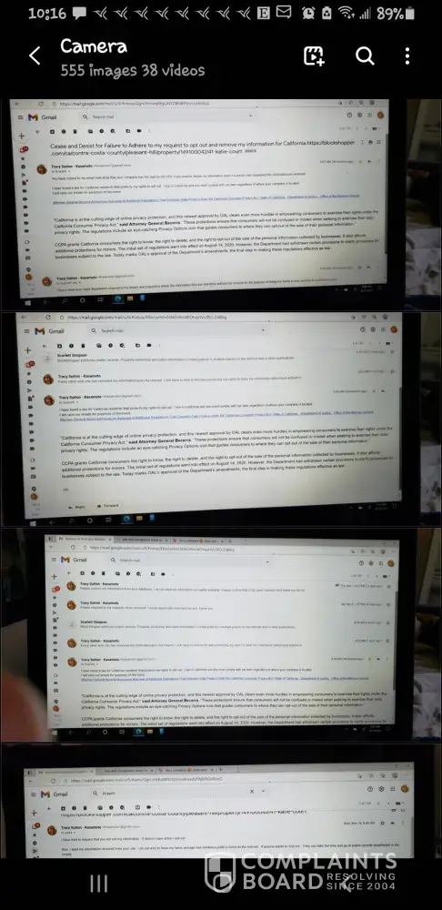 We have contacted Blockshopper on multiple occasions to remove our identifying information from their listing of our house. California law requires that our information be removed, and we have sent them all of the relevant documentation to substantiate this, but they are ignoring our request and messages.