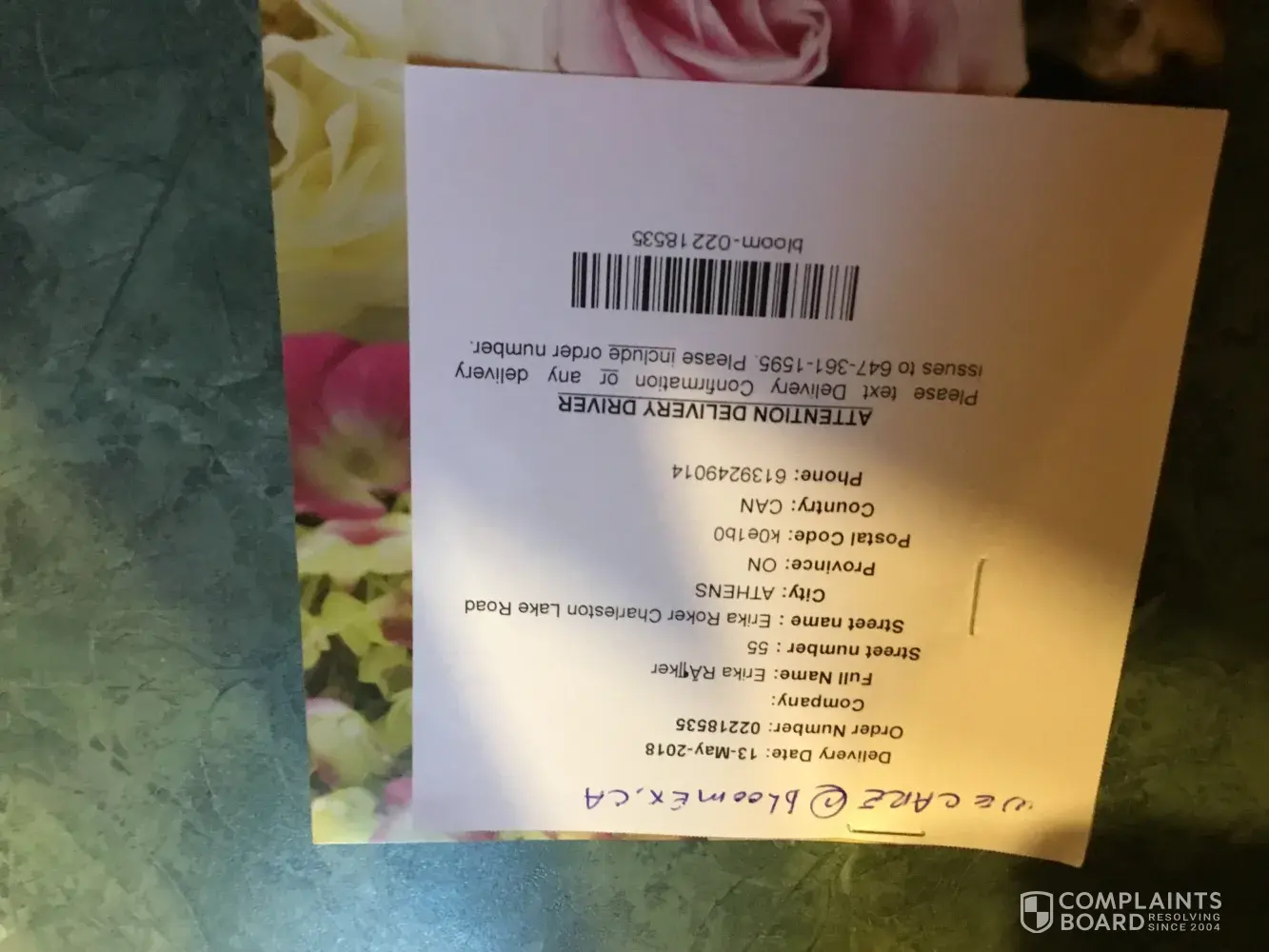 I've ordered from Bloomex.ca a few times and had zero issues. My last two orders have been a nightmare though. (#[protected] and [protected]). The first one was for my partner who is working out of town. Bloomex delivered them 3 days early and my partner is not home. The second order was for my mother's birthday. They were delivered days late to her office on her day off. So it made me look like I forgot her birthday. Both times I contacted bloomed and both times they failed to provide any compensation for their errors.