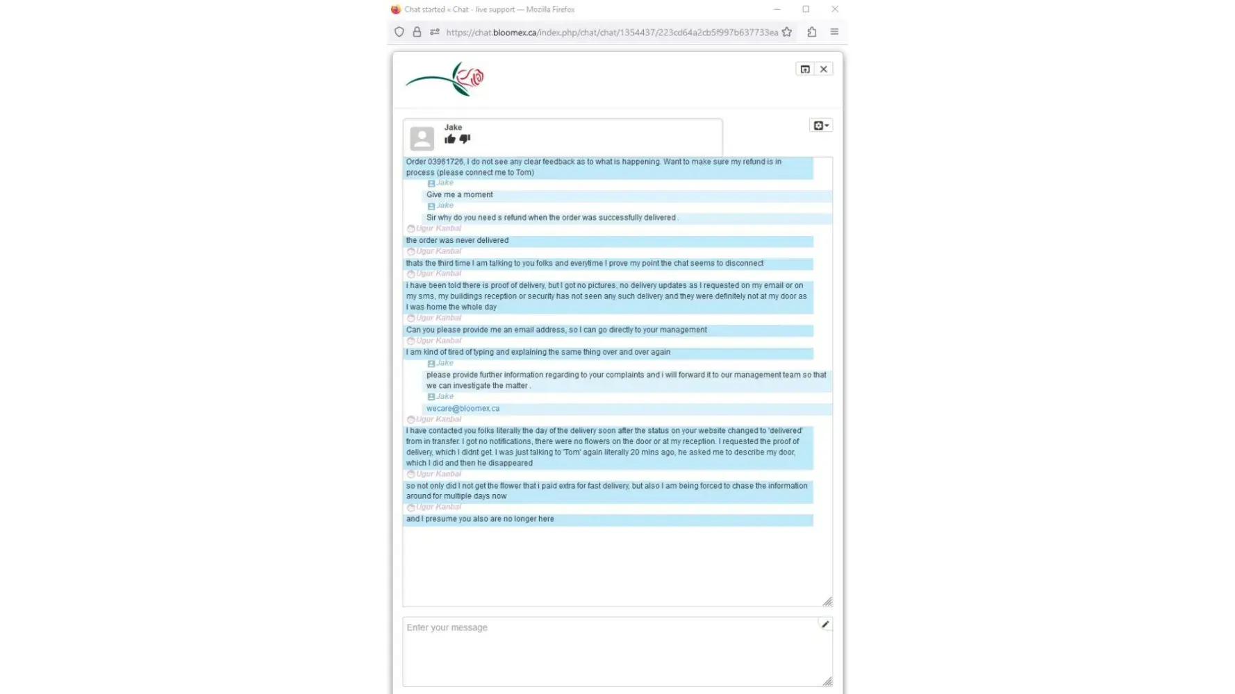 Bloomex failed delivery
