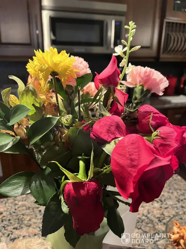 They delivered these dead flowers 6 days past the delivery date. They did not make any effort to take initiative to correct the mess they created by sending sending out this order on same date that the flowers should have been delivered on an overnight delivery service. This meant the delivery would have still arrived one day later.