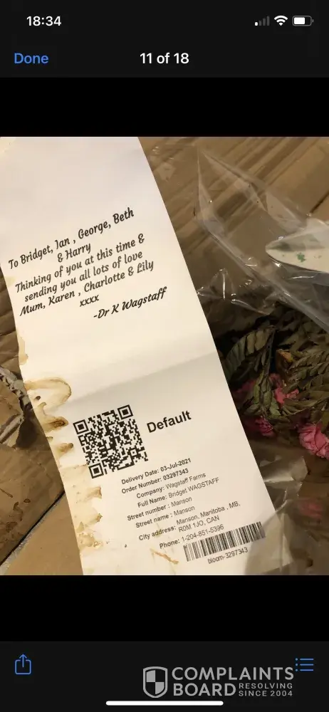 I am appalled by this total lack of customer service, especially in these difficult times, where my sister in law was unable to attend the funeral of her mother in the UK, hence the flowers as a gesture of sympathy and support.