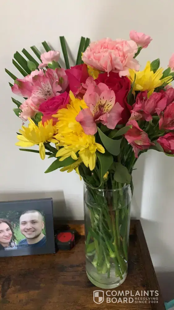 As we received the bouquet it was absolutely nothing like the picture. I realized they charged me 90 dollars for an 8 dollar bunch i could have gotten from my grocery store. In addition, the wreath was worse it was suppose to be a a deluxe white wreath but instead we got green mums. I've called multiple times about my order in expressing how embarrassing the orders were and the "customer service agents" were all generic/ automated voices that said my ordered was rushed and sent the same day which was why i got the flowers i did, the florist ran out of flowers and the best one yet that everything on the site is not as promised. This is false advertising as they should have not provide and MAKE ME PAY for same day shipping if its not an option or even promise an order or product they can not provide!