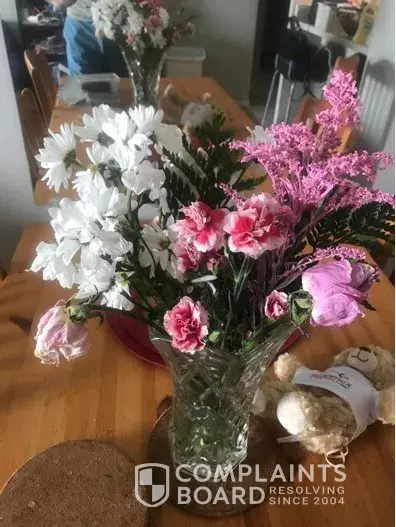 It should be noted that the flowers were shipped from a city only 1 hour away from where they were to be delivered. I'm sure the flower arrangement is either no longer fresh or the flowers are wilted and dying.