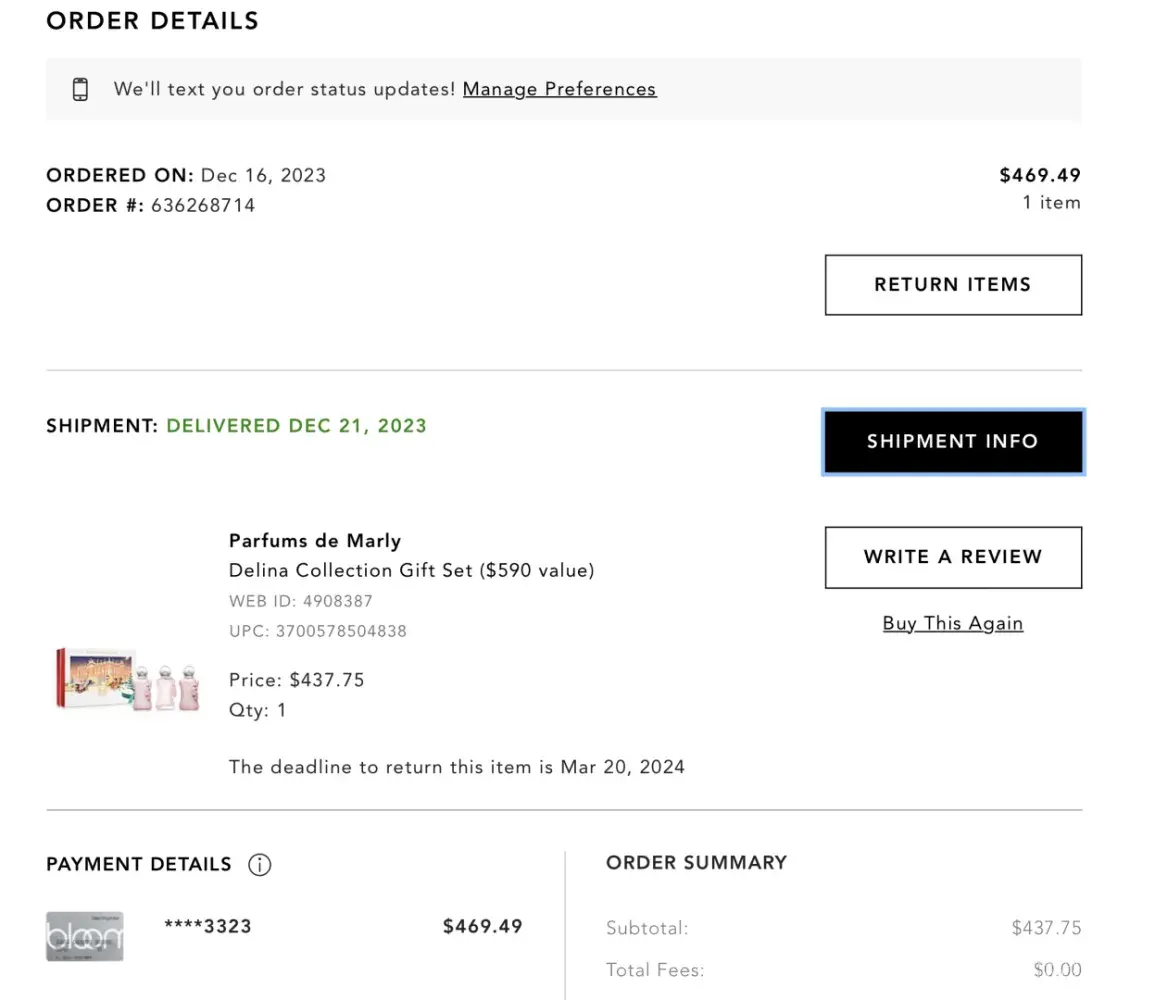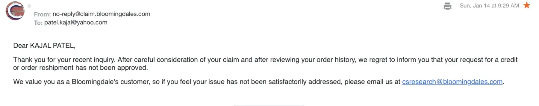 Disappointing experience with bloomingdale's: lack of customer service and delayed delivery
