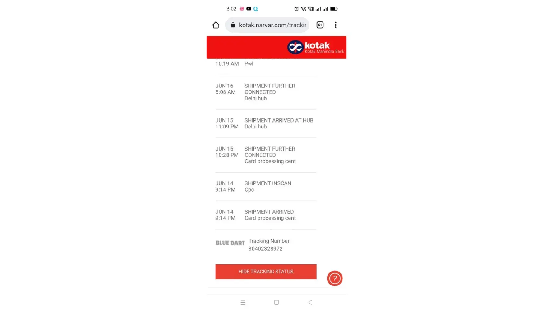 My AWB no [protected] (HDFC card)