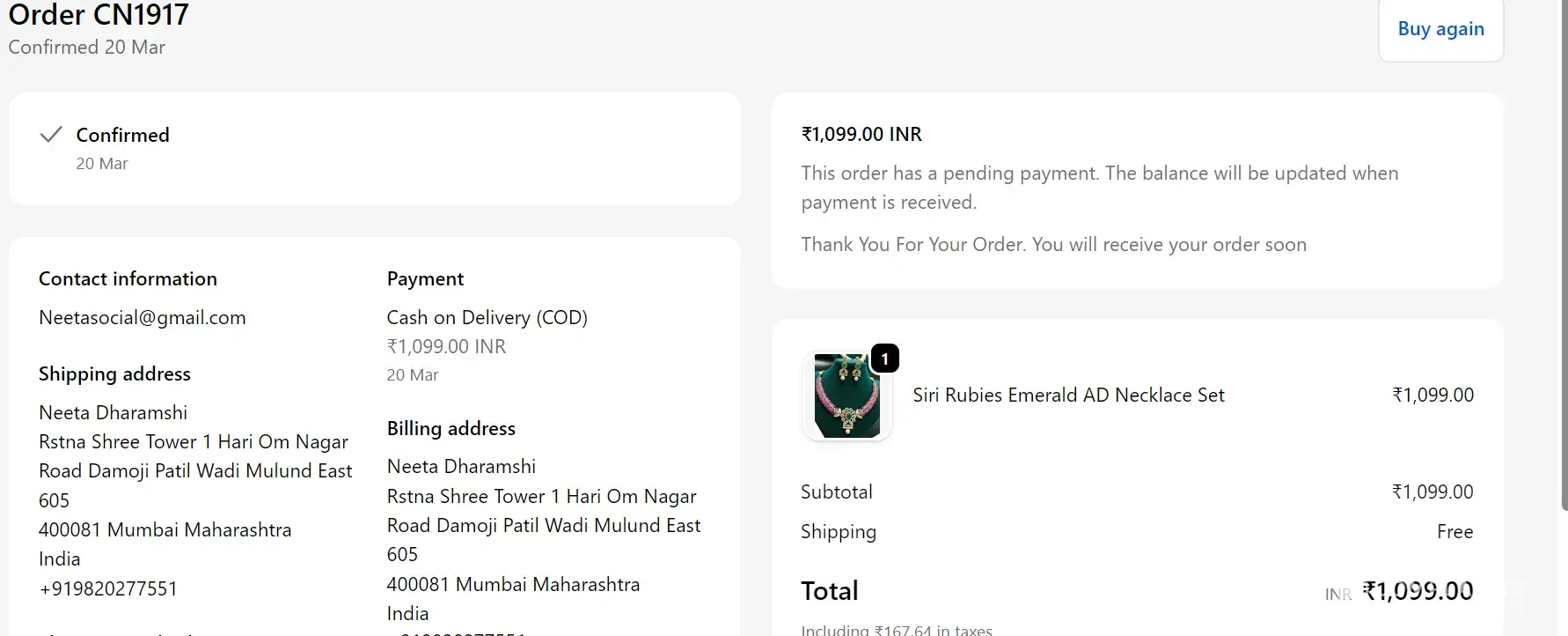 Mr. Sonu # [protected] (Parcel delivered by this person dt. 16.6.22 address is same both shipment)