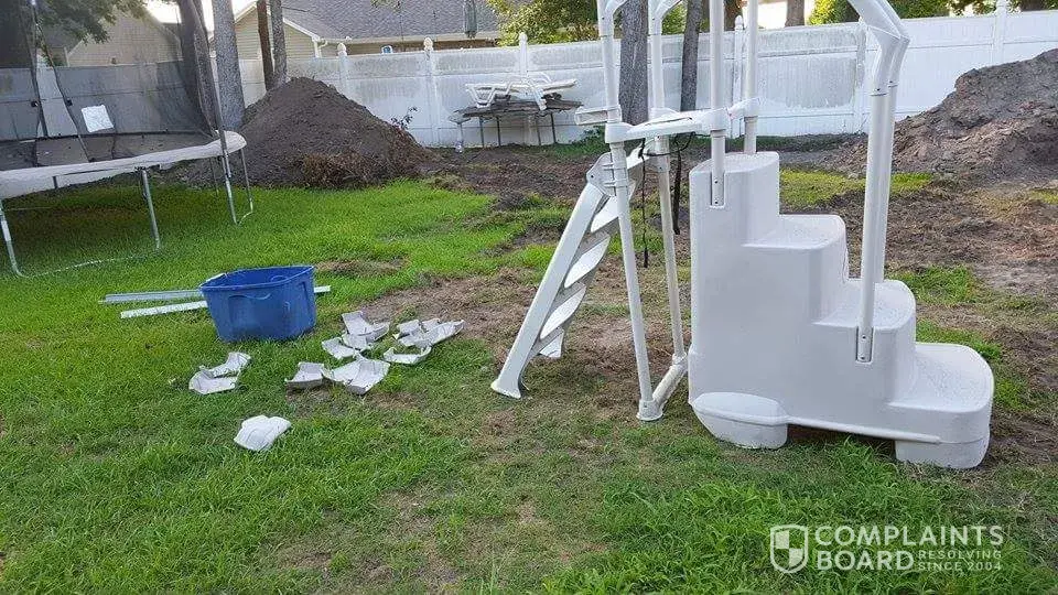 Everything appeared to go well the following week. The contractor arrived a day early. He and his crew reported that they were going to take down part of the fence to get a small tractor in the back yard which would cost an additional $150 after we just paid him 4000 to set the pool up. We took a deep breath and a leap of faith and paid him to set it up, take apart the fence, and put it back together. The fence is now broken because they did not put the gate back correctly. We will have to hire someone to fix the latch, gate, and remove pieces of cement that was left in our backyard. They also carved dirt to level the yard for the pool. They told me that I would have to disperse the dirt around the yard. It was three piles 6 feet high. I hired two different people, $200 dollars later to level the three piles of dirt. I asked the contractor to put the trash in the front yard so that the trash men would pick them up. They left a huge mess after the trash men left. I packed the car up and went to the local dumpster two times to get rid of boxes, plastic, tubing, and lining. The contractor gave false information about the pool. He reported to keep the filter on 4 hours per day whereas, the website reports to keep it on for 12 hours per day.