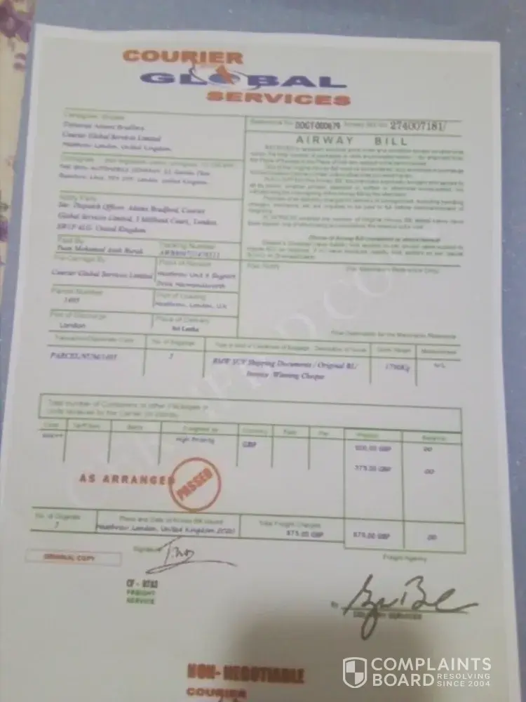 Kindly note that the original of your winning cheque and the certificate with other relative Documents from the court and the probate registry has been forwarded to the Courier Company for onward Delivery to you as soon as you contact them. Let it be known to you that all Taxes and Delivery Fee has been Paid. by BMW AUTOMOBILE COMPANY UNITED KINGDOM, Therefore, you will only be required to pay Sri Lanka Local Custom Clearance Fee when your Parcel has Arrived in your country.